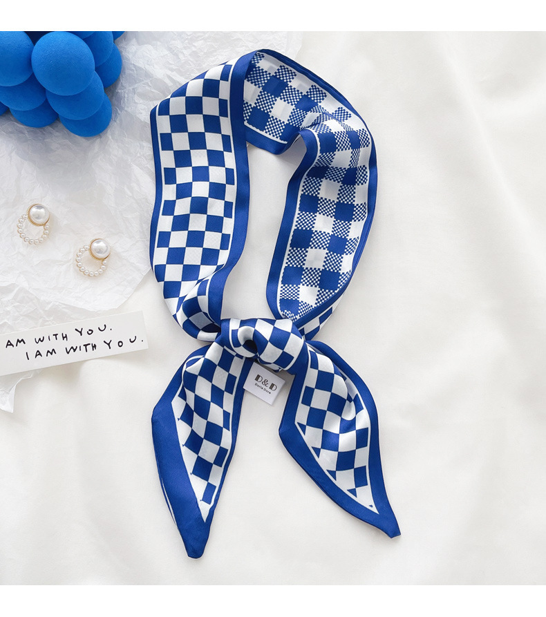 클라인 블루 스카프 작은 스카프 봄과 여름 새로운 도착 체커 보드 헤어 밴드 리본 스카프 가을 장식 여성 헤어 타이