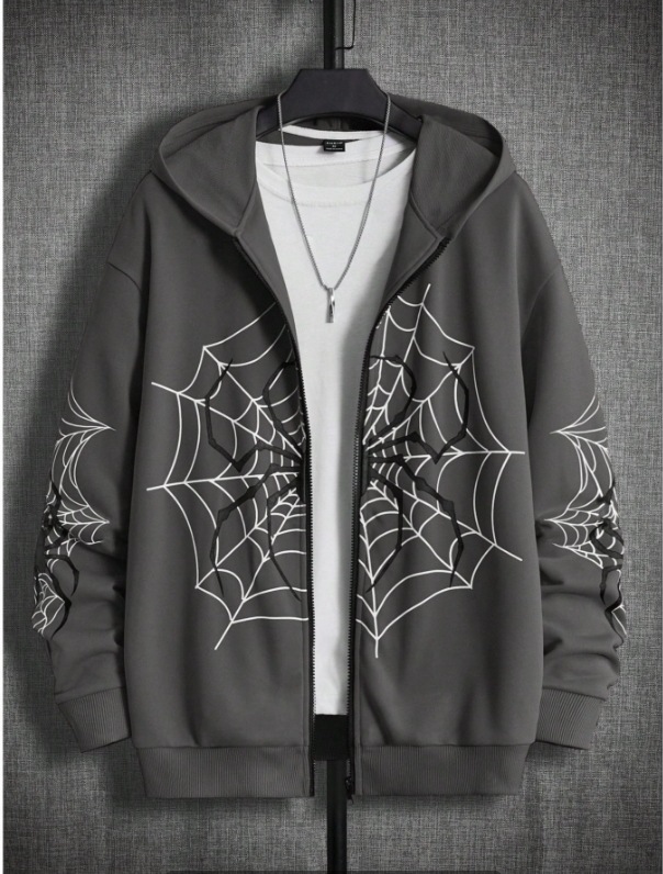 봄 가을과 겨울 새로운 유럽과 미국의 국경 남성 스웨터 스파이더 웹 3D 디지털 인쇄 느슨한 지퍼 후드 카디건스토어 가기