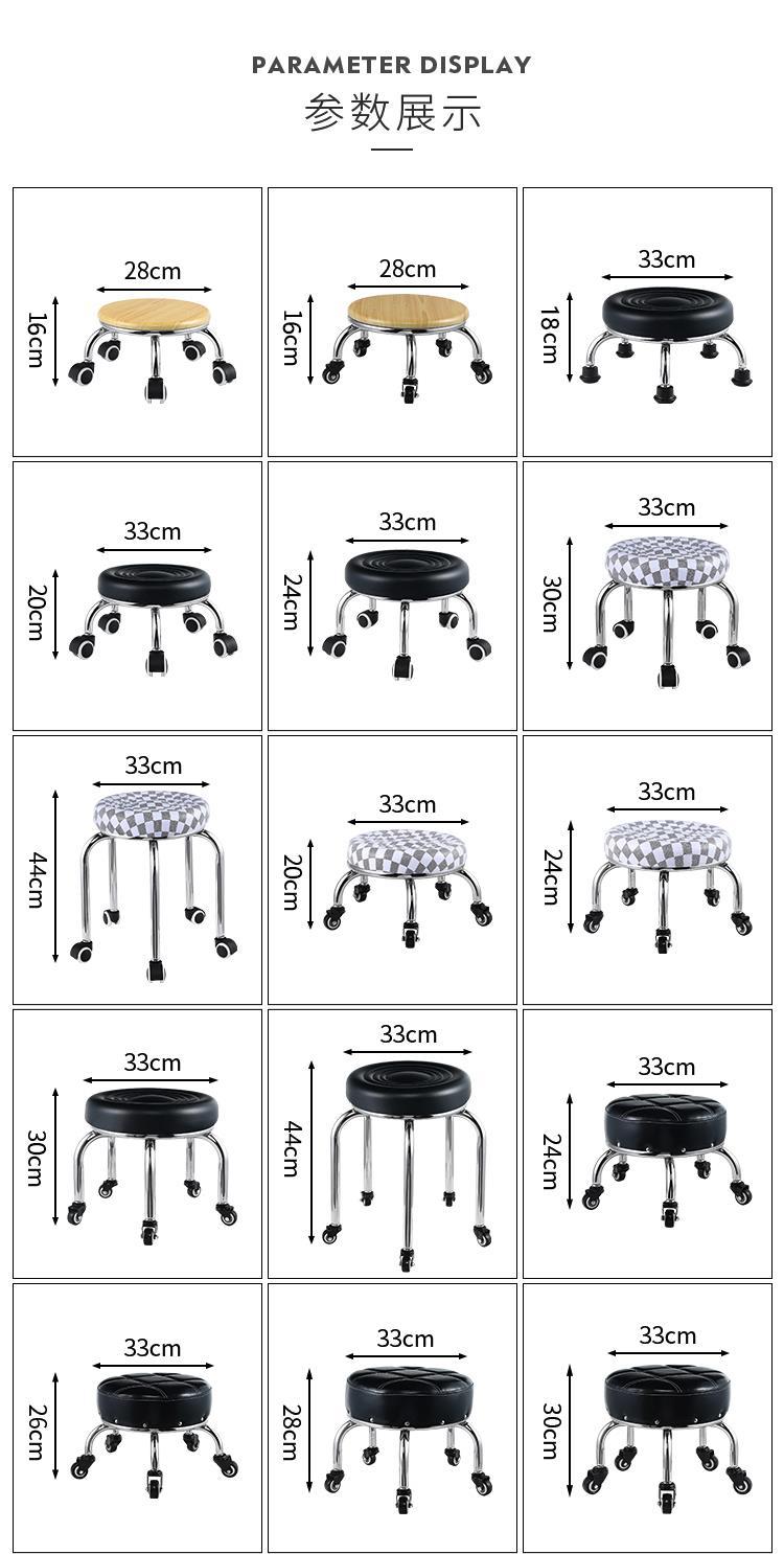 바퀴 달린 작은 의자 낮은 의자 풀리 의자 둥근 벤치 아기 아이들의 발걸음이 달린 의자 신발 변경 네일 아트 의자 모바일 등받이 의자