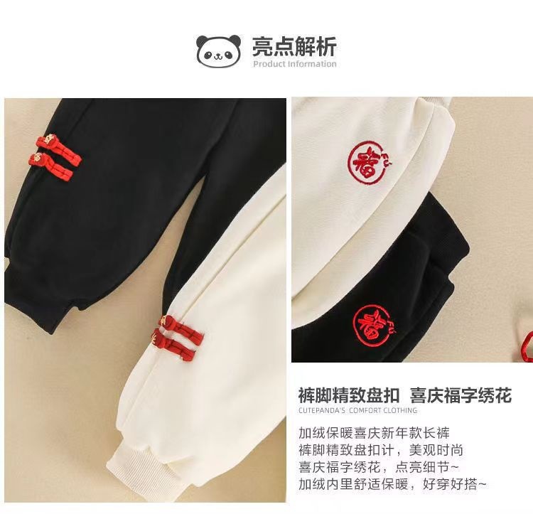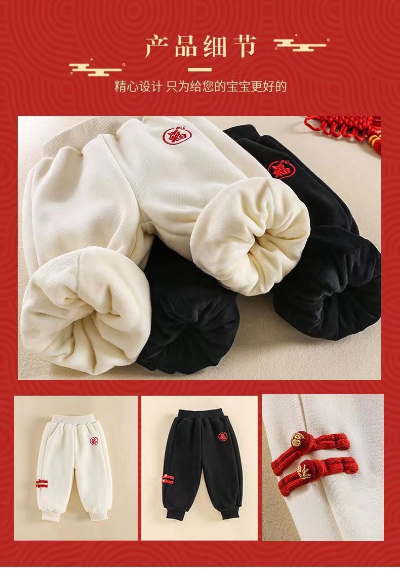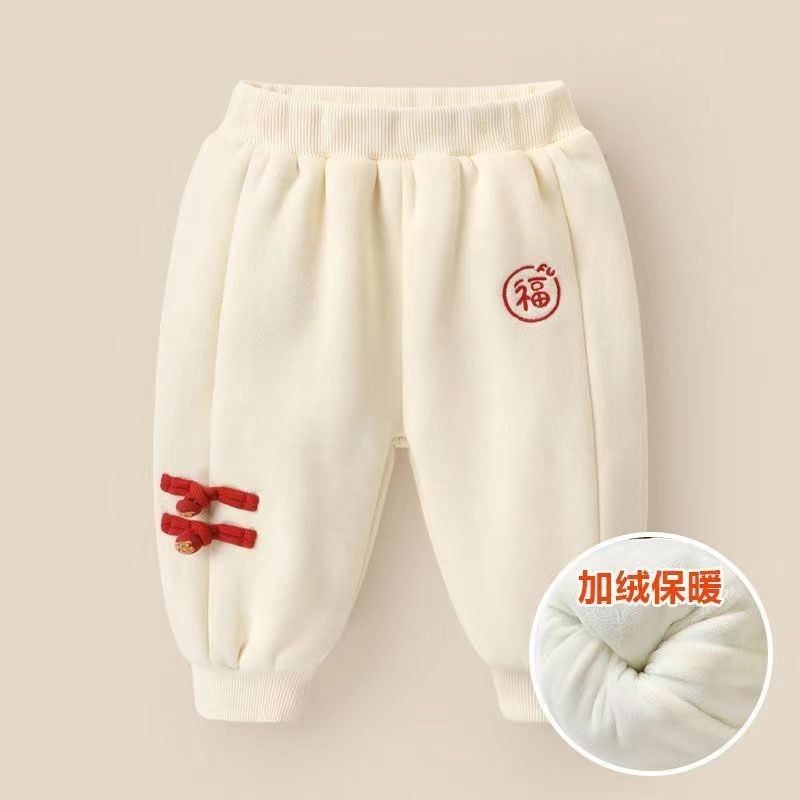 2025 아기 설날 새해 기모 두꺼운 긴 바지 겨울 옷 소년 소녀를위한 가을과 겨울 아기 면화 바지스토어 가기