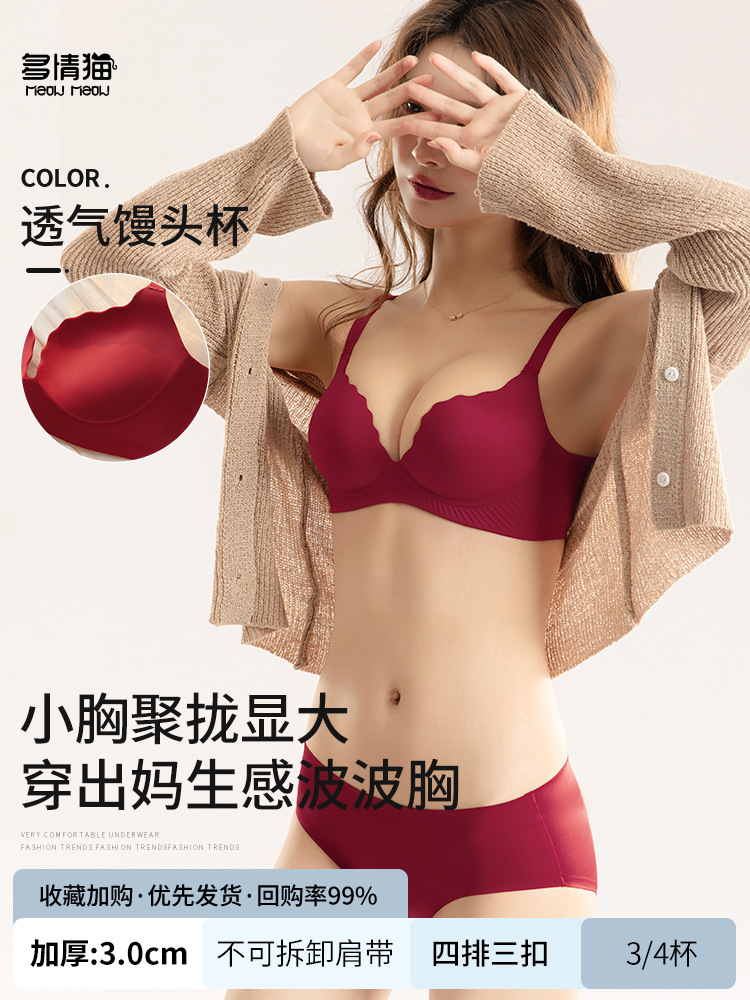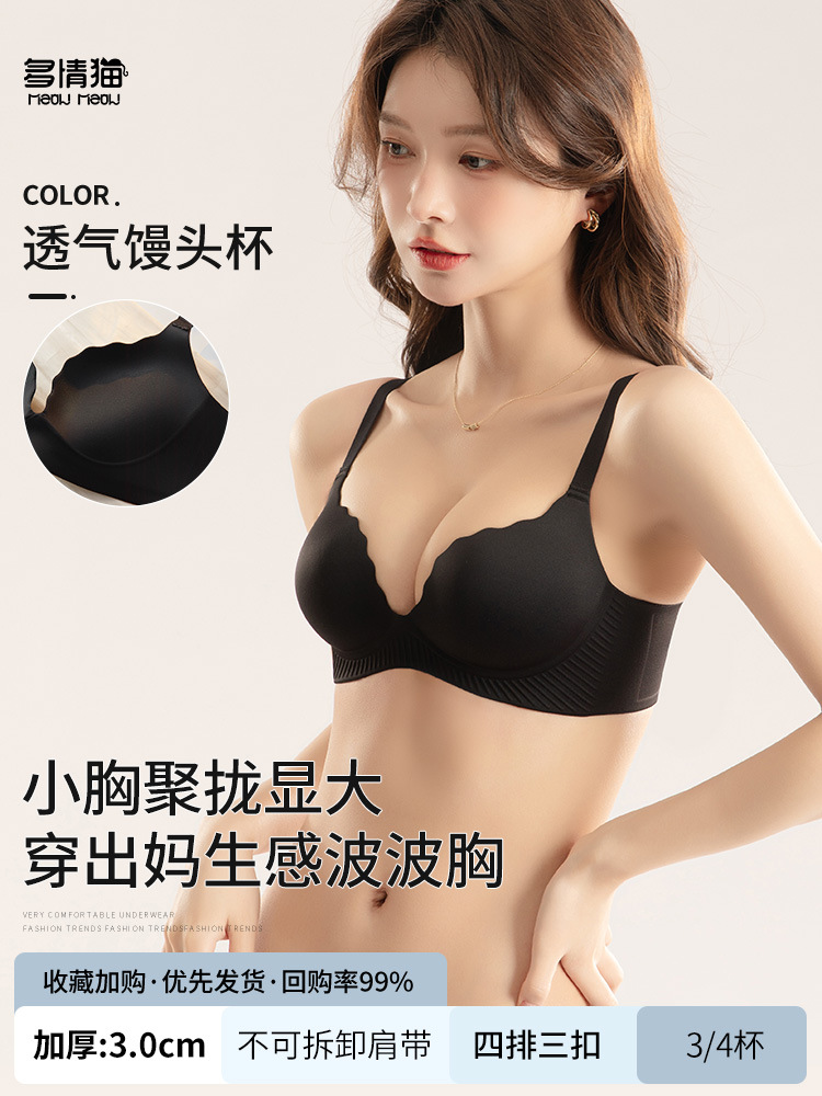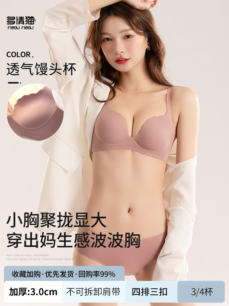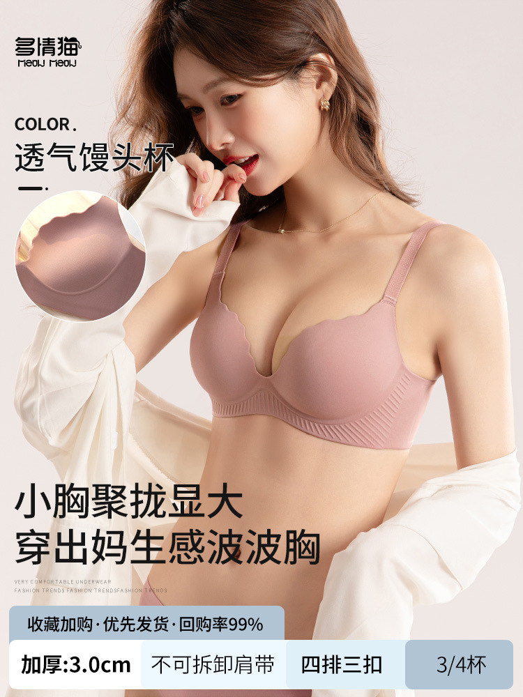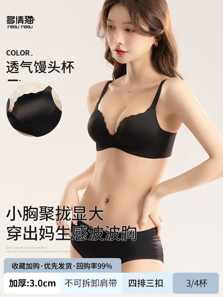 Passiony Cat Traceless 두껍게 찐 빵 컵 작은 가슴 큰 가죽 속옷 여성의 처짐 방지 좁은 가슴 브래지어 세트스토어 가기