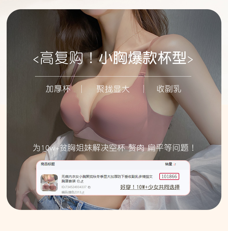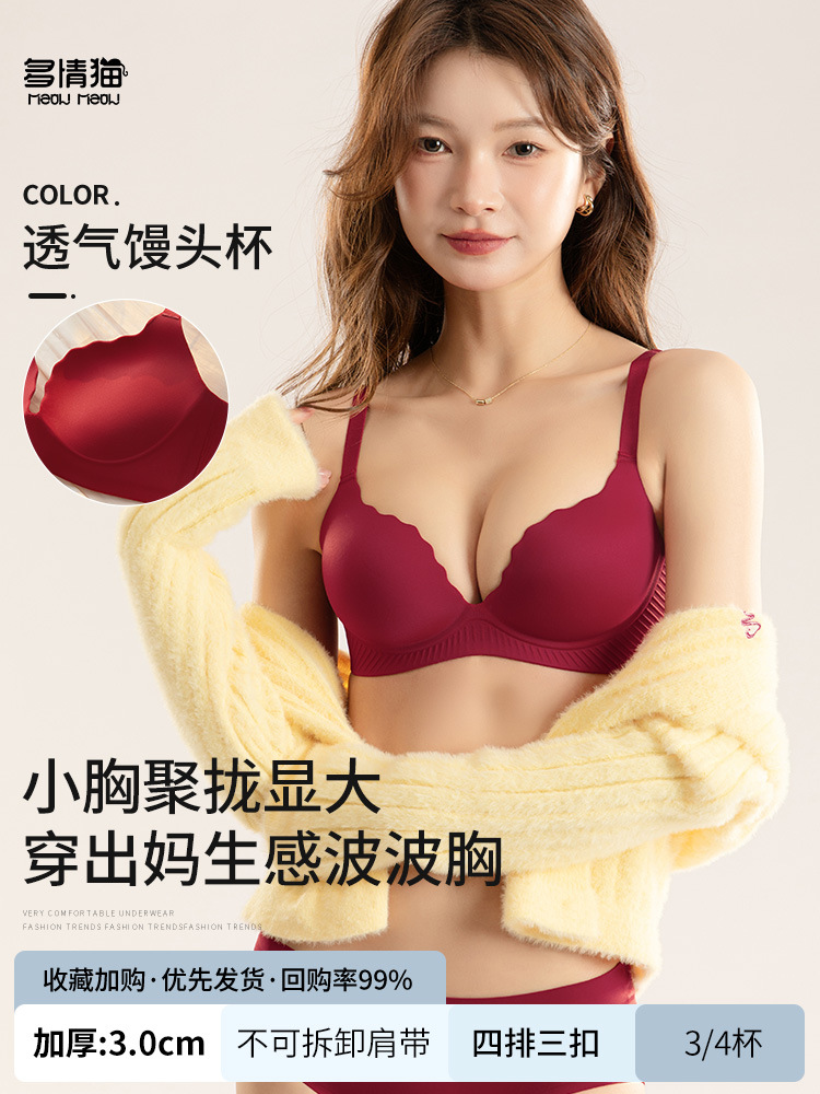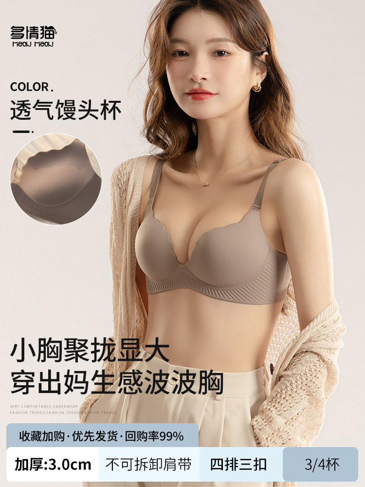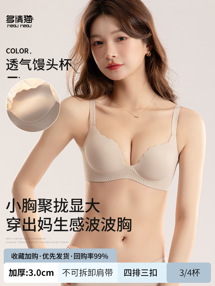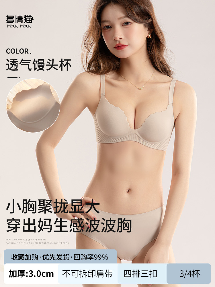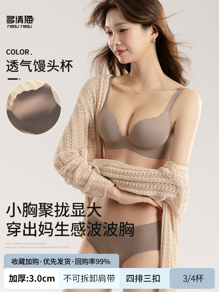 Passiony Cat Traceless 두껍게 찐 빵 컵 작은 가슴 큰 가죽 속옷 여성의 처짐 방지 좁은 가슴 브래지어 세트스토어 가기