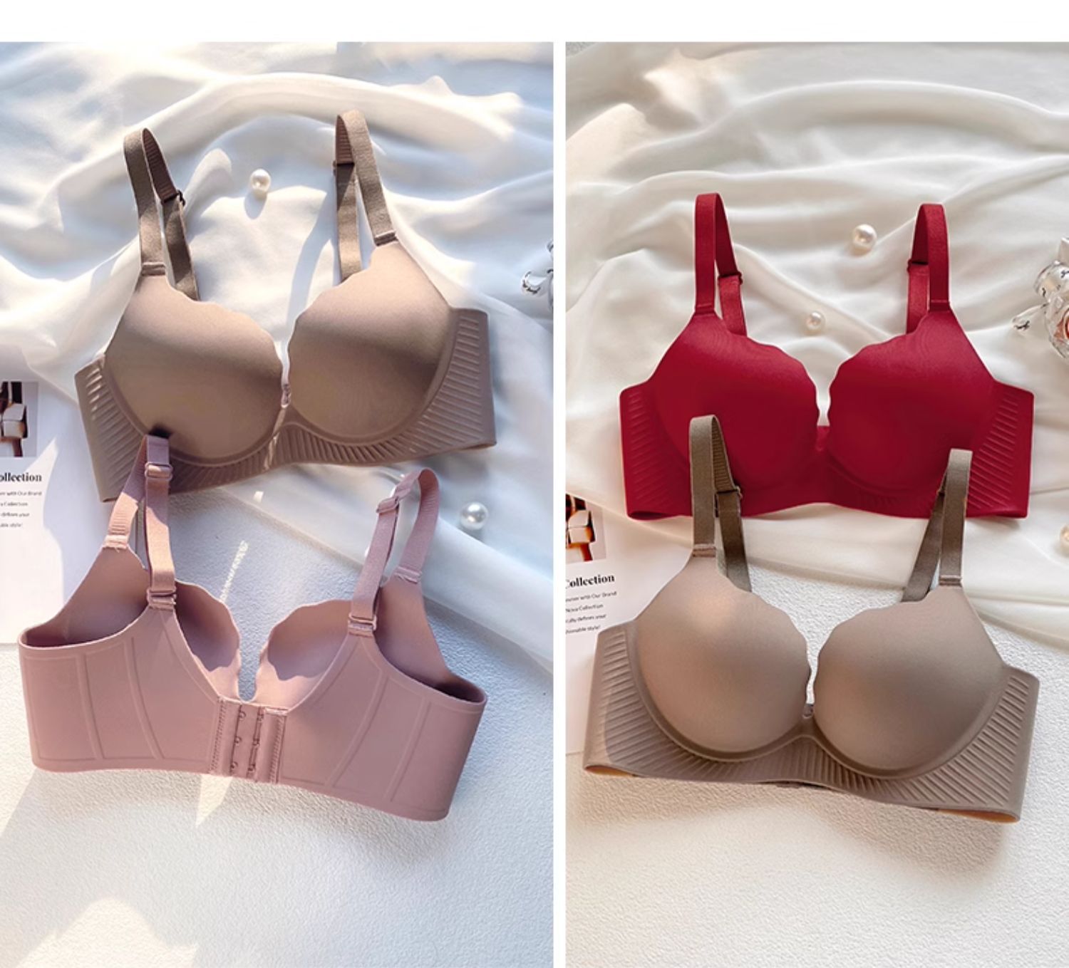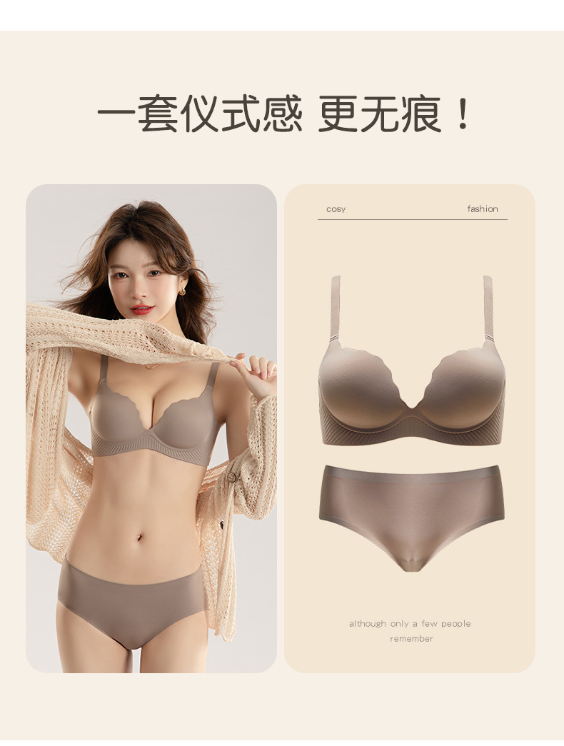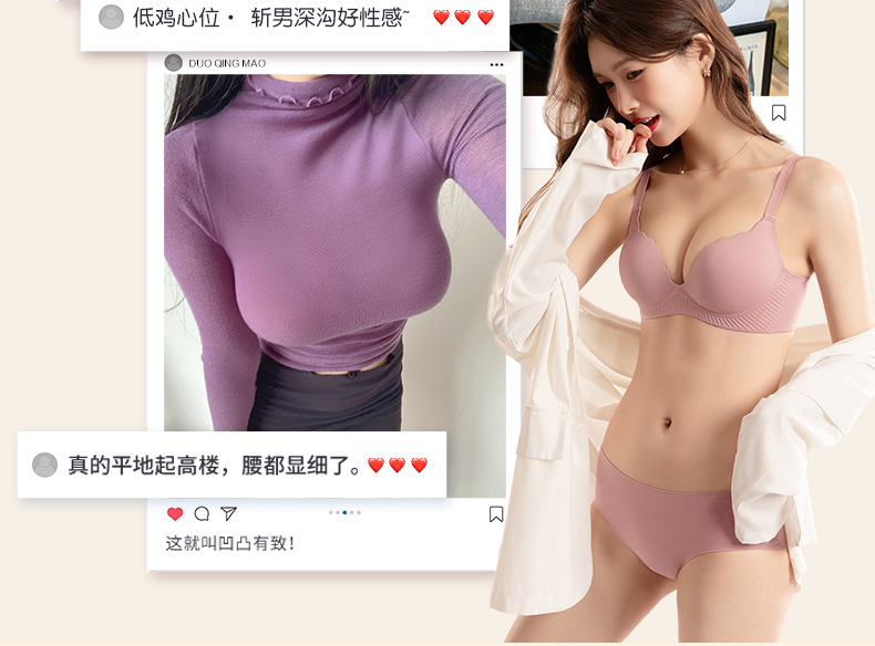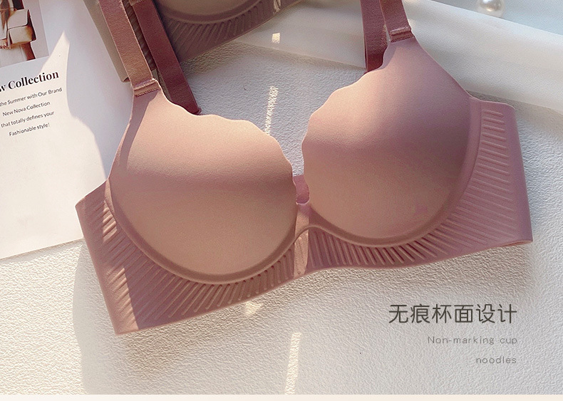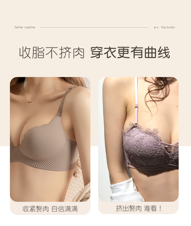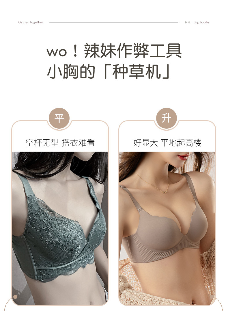 Passiony Cat Traceless 두껍게 찐 빵 컵 작은 가슴 큰 가죽 속옷 여성의 처짐 방지 좁은 가슴 브래지어 세트