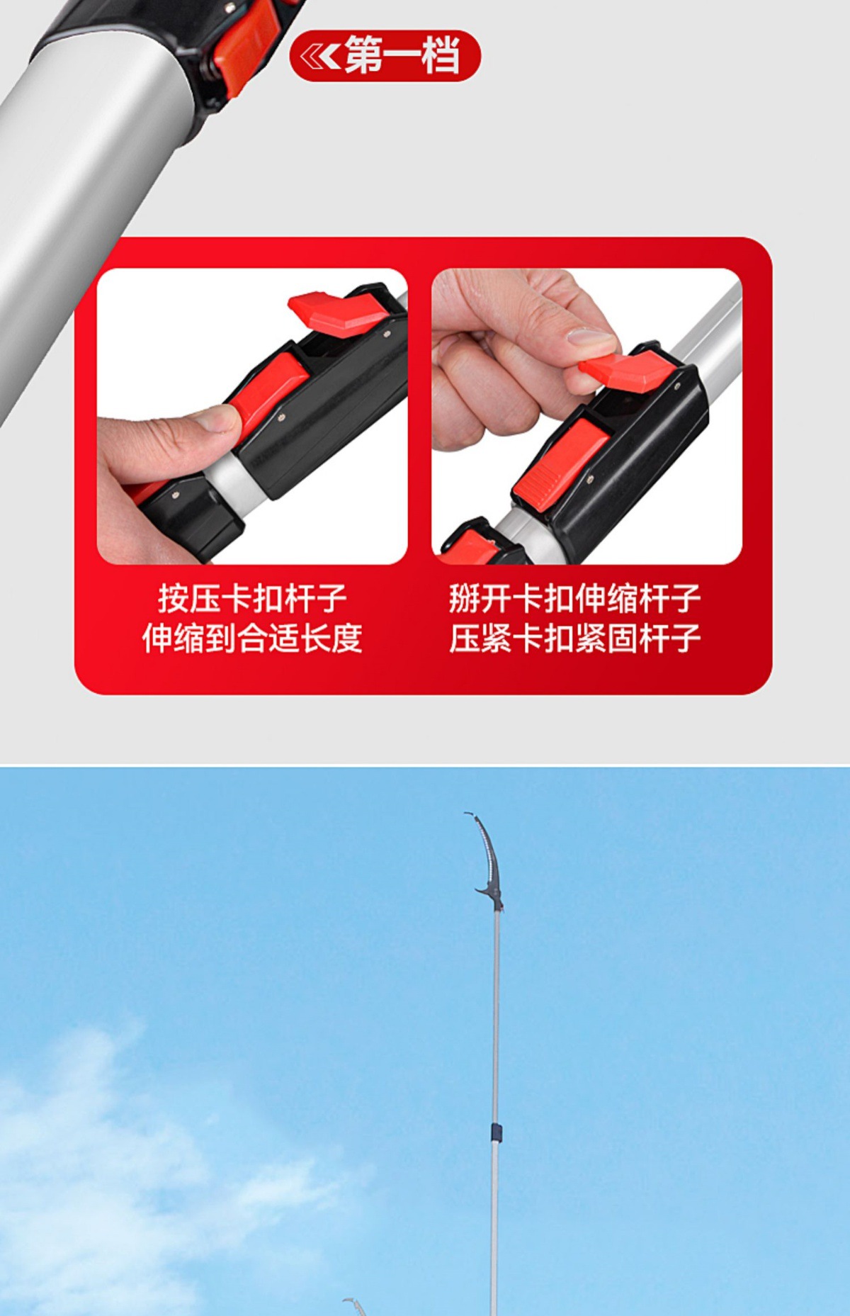 • [경제형 모델] 6m 텔레스코픽 폴 + 이중 후크 톱(원예 가위 포함)