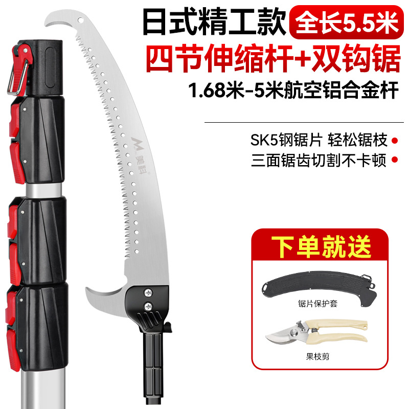 • [일본 세이코 모델] 5m 텔레스코픽 폴 + 더블 후크 톱(톱박스 및 원예 가위 포함)
