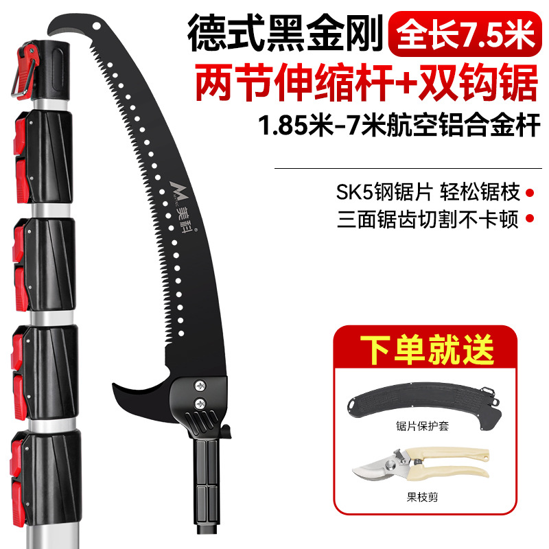 • [독일 블랙 킹콩] 7m 텔레스코픽 폴 + 더블 후크 톱(톱박스 및 원예 가위 포함)