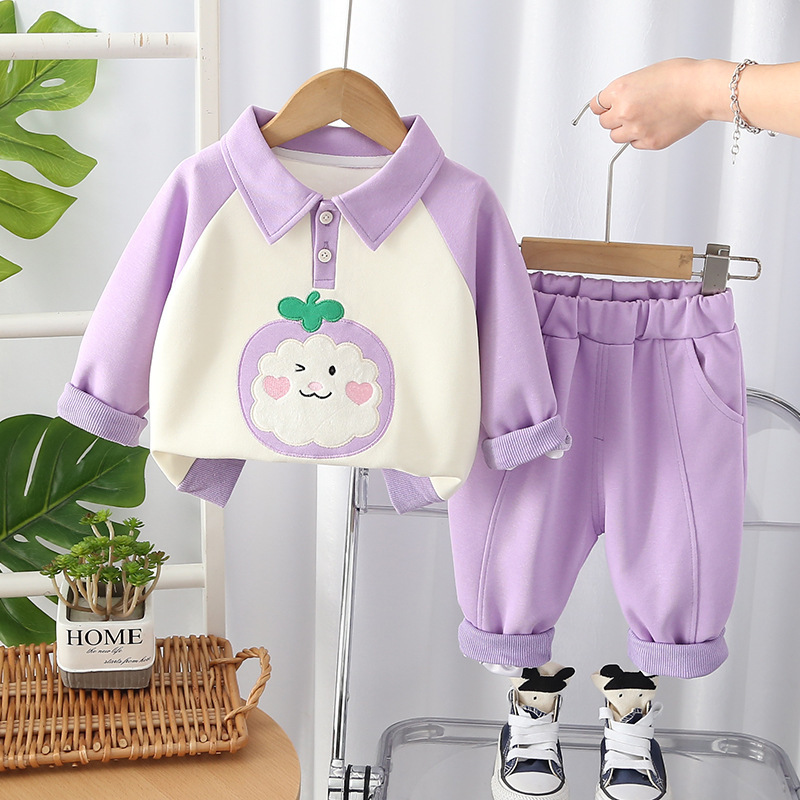 소녀의 봄과 가을 옷 세트 2025 새로운 서양식 아기 어린이 봄 만화 폴로 셔츠 스웨터 2 피스 세트스토어 가기