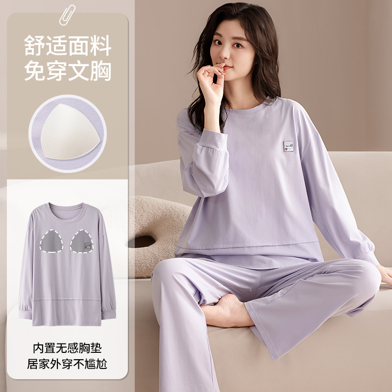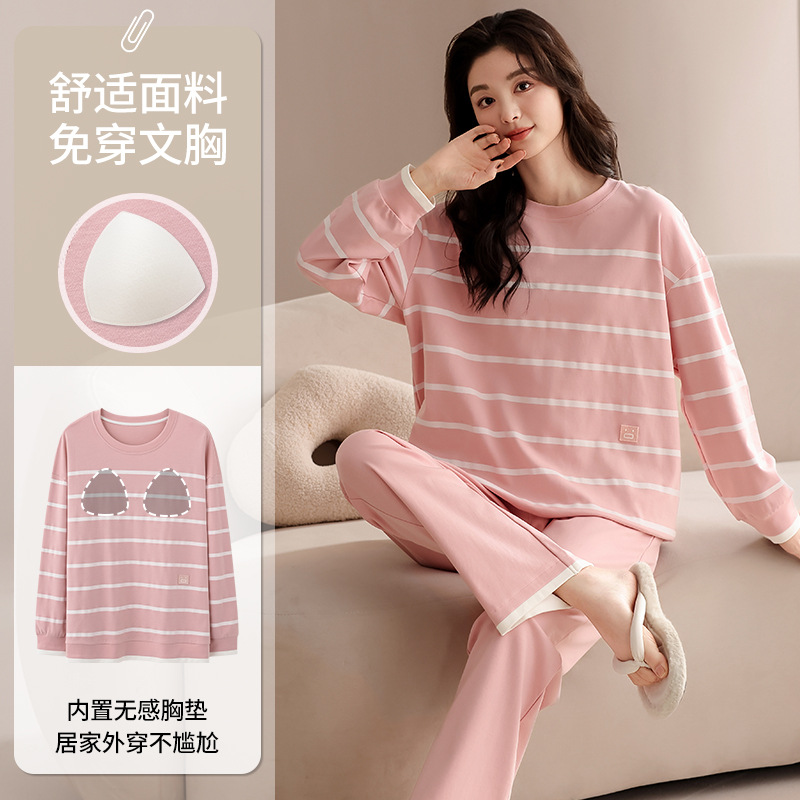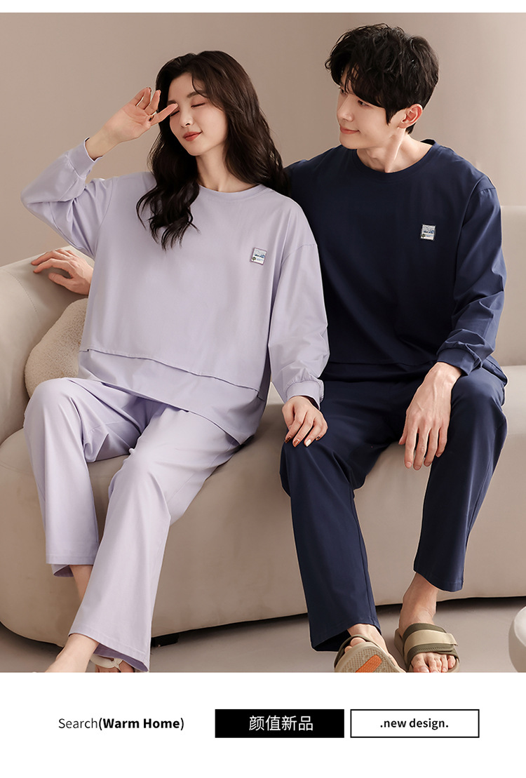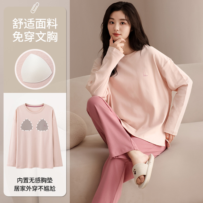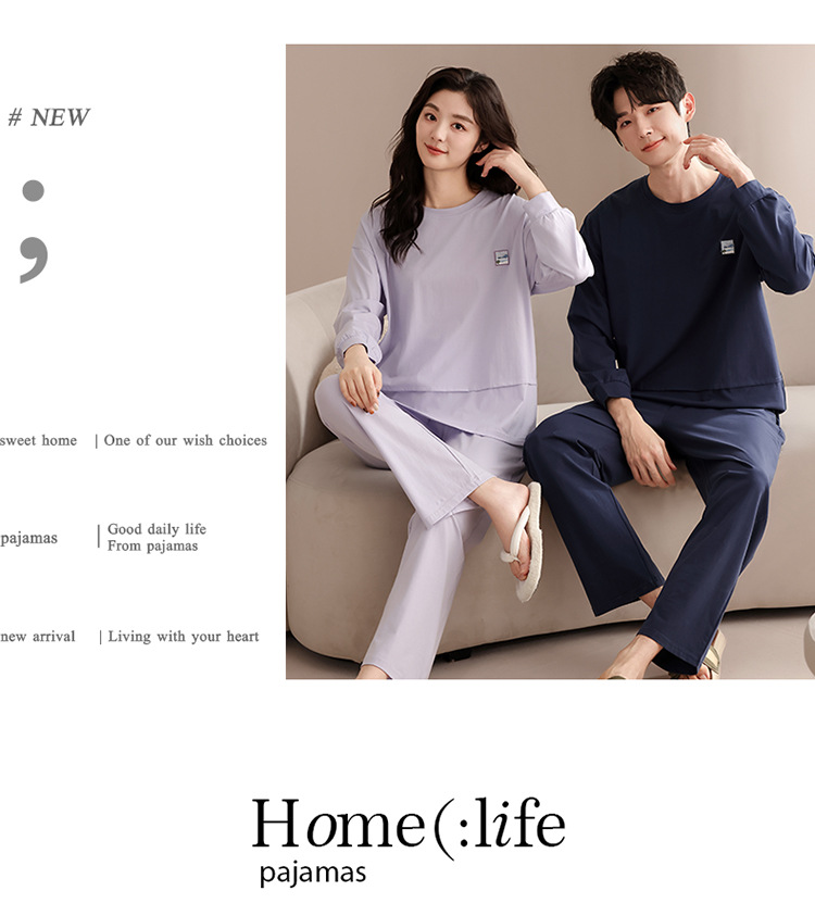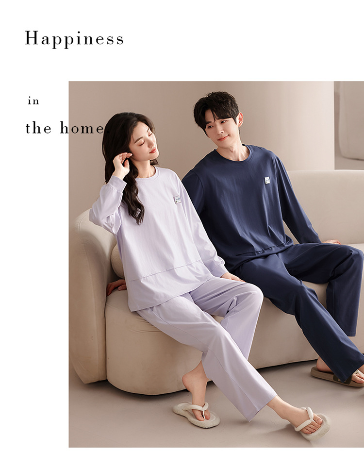 클래스 A 커플 잠옷 순면 긴 소매 봄과 가을 여성의 단색 남자 홈 의류 가슴 패드 세트스토어 가기