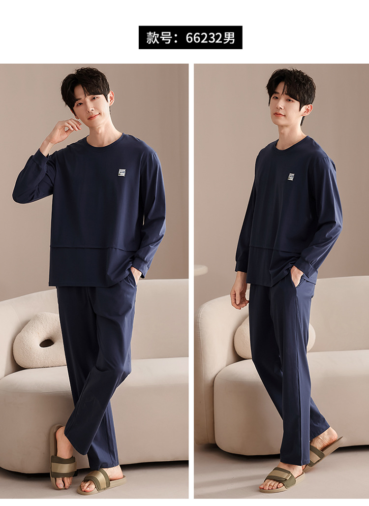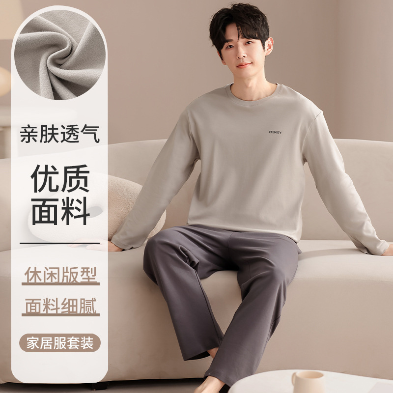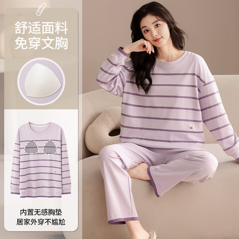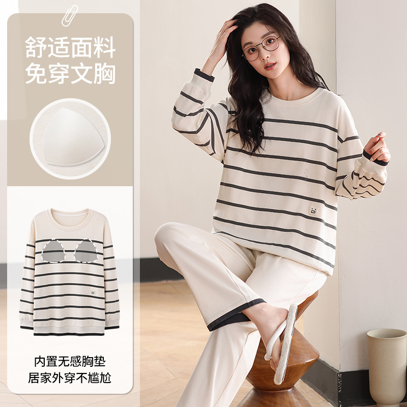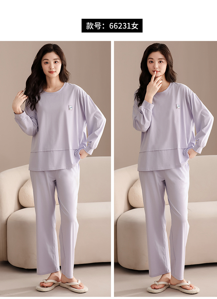 클래스 A 커플 잠옷 순면 긴 소매 봄과 가을 여성의 단색 남자 홈 의류 가슴 패드 세트스토어 가기