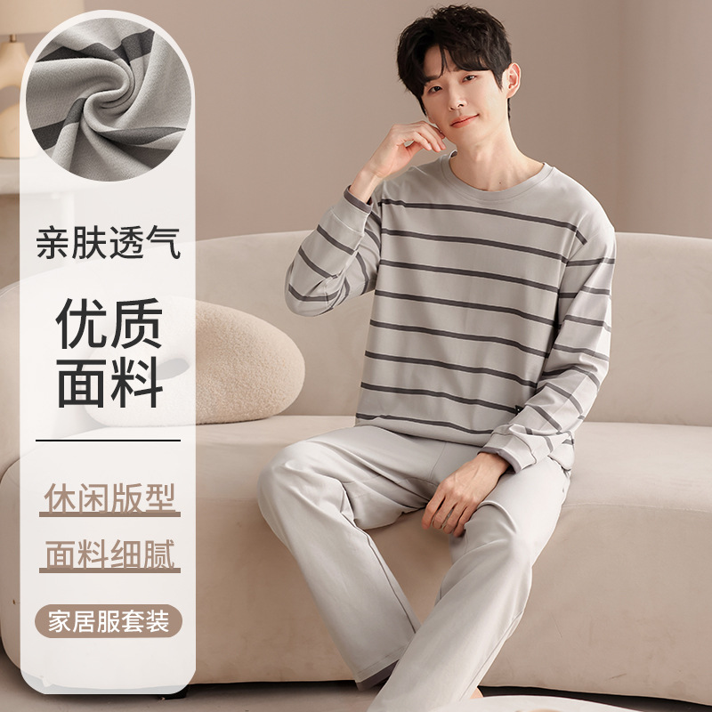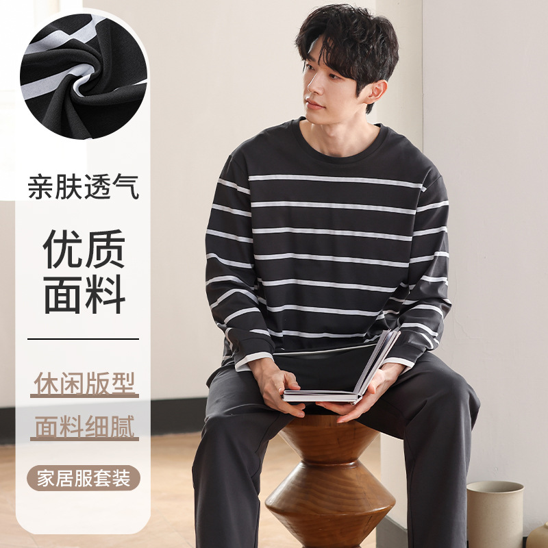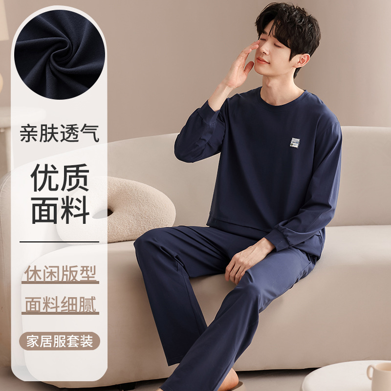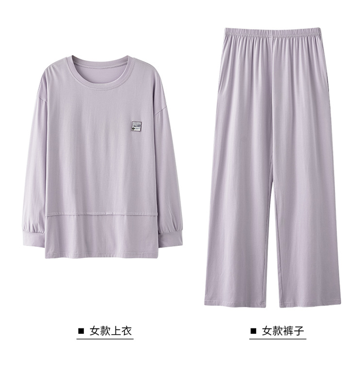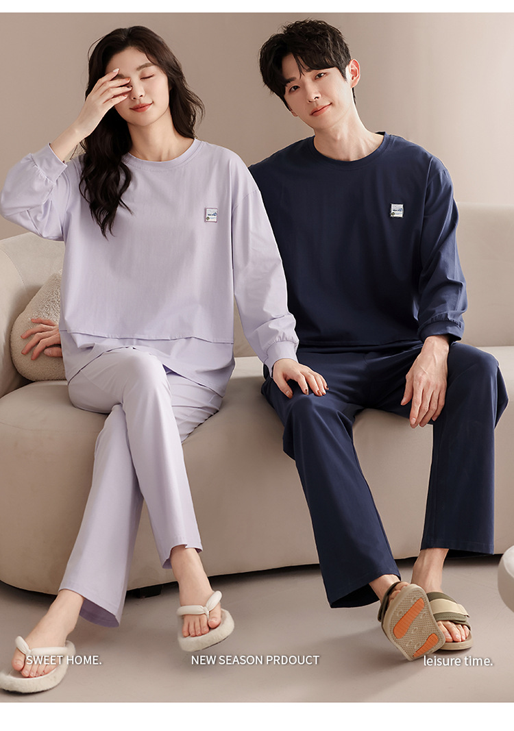 클래스 A 커플 잠옷 순면 긴 소매 봄과 가을 여성의 단색 남자 홈 의류 가슴 패드 세트