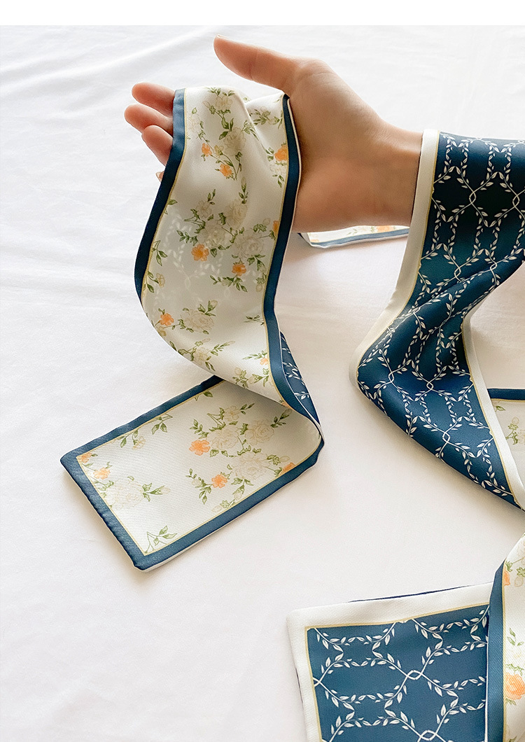 봄과 여름 올 매치 그린 우아한 실크 스카프 작은 긴 여성 헤어 밴드 넥타이 가방 리본 장식 스카프 셔츠스토어 가기