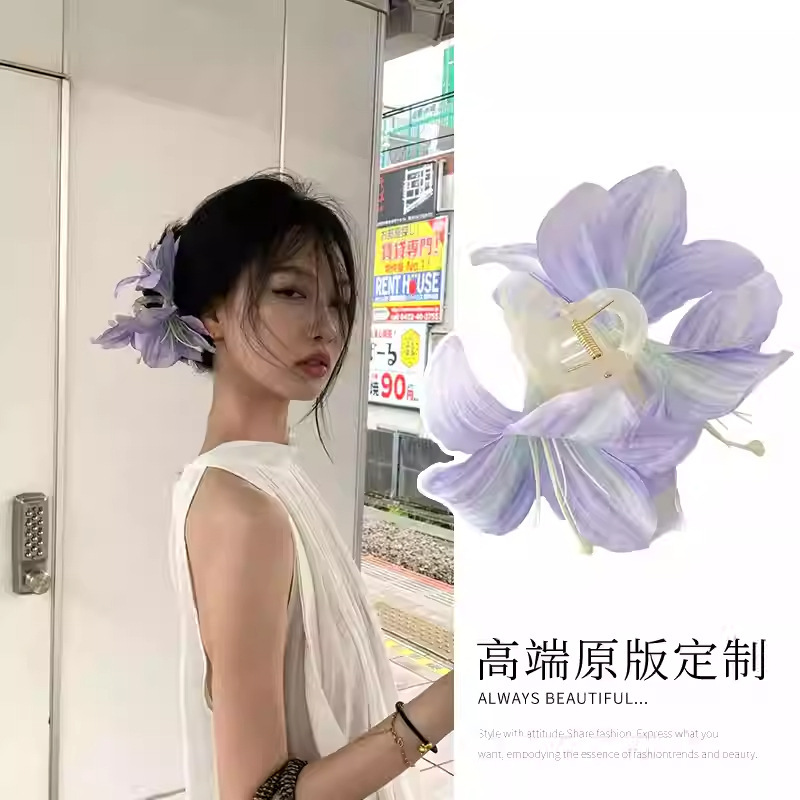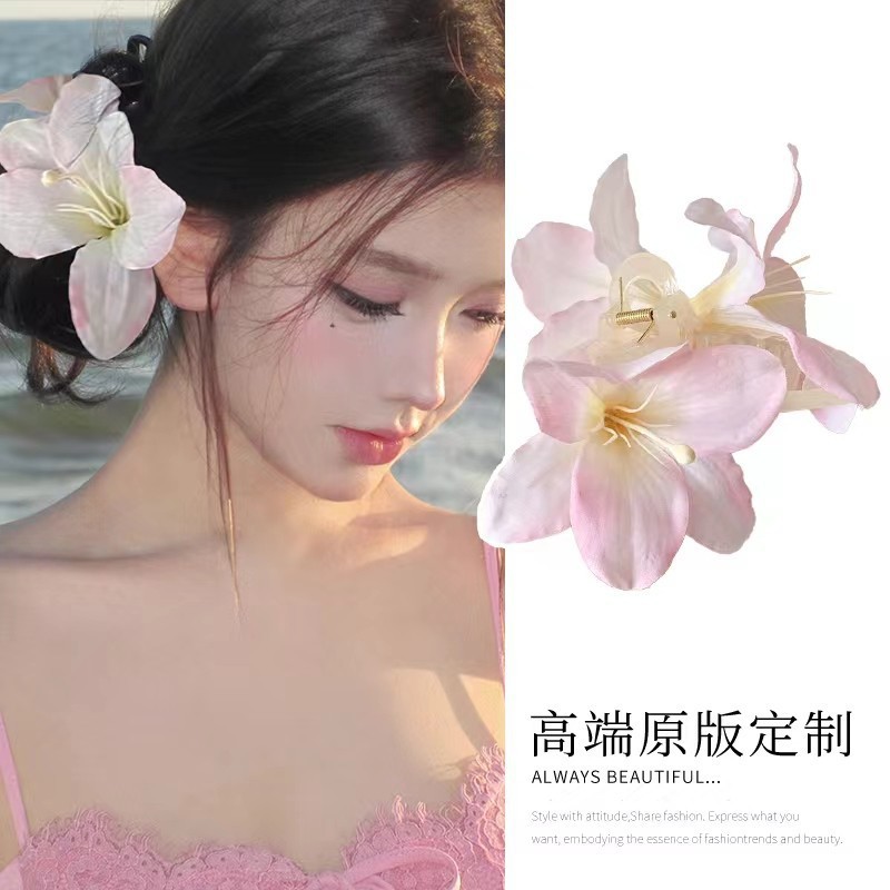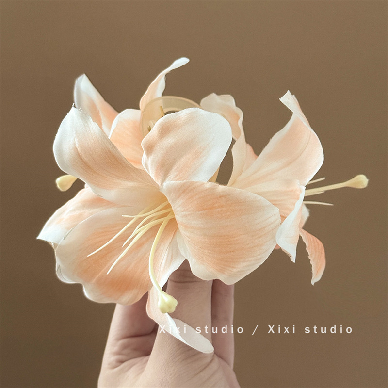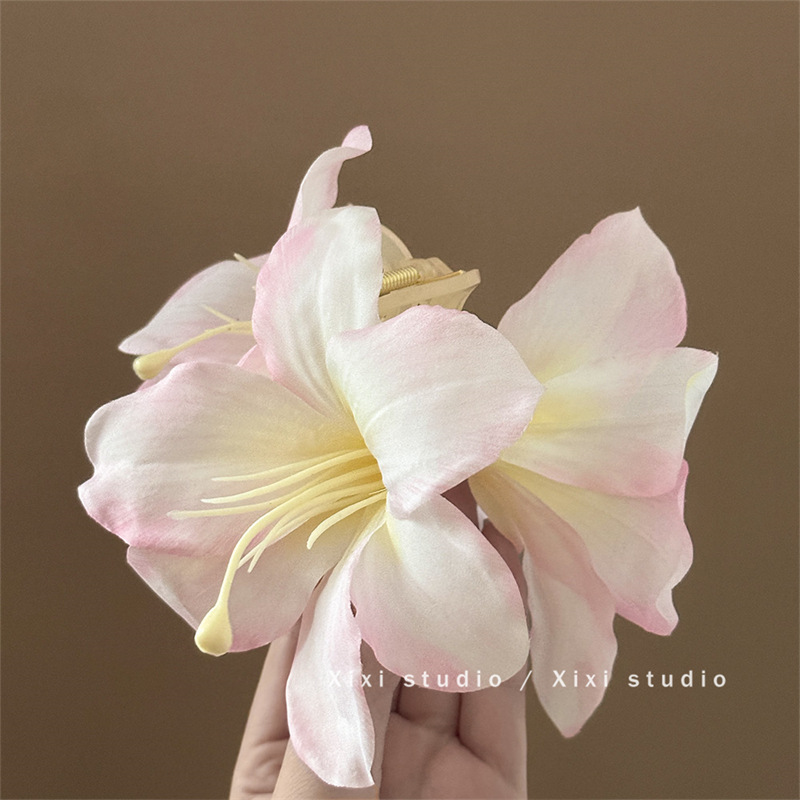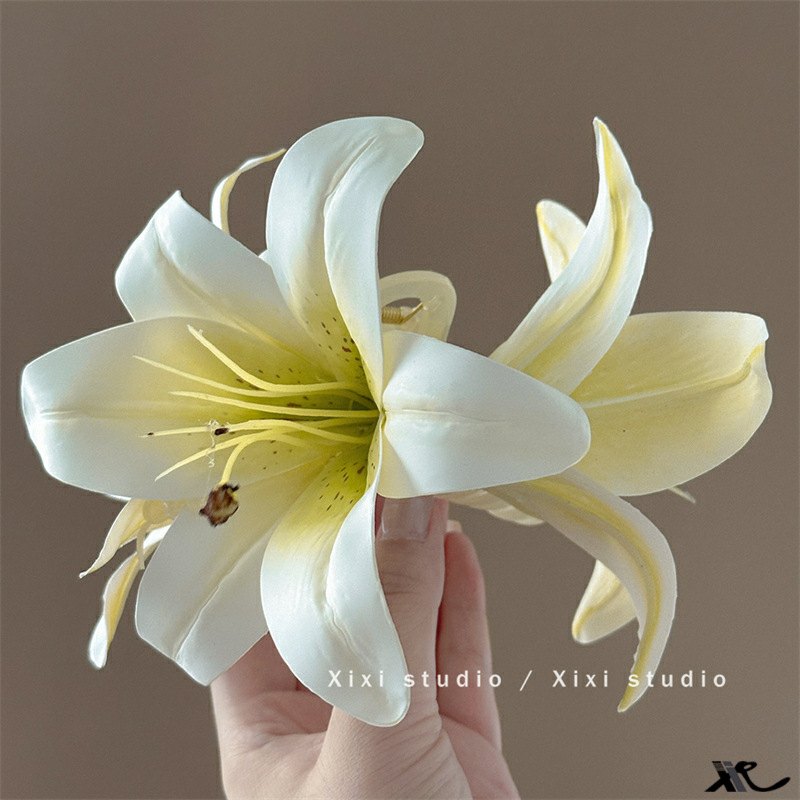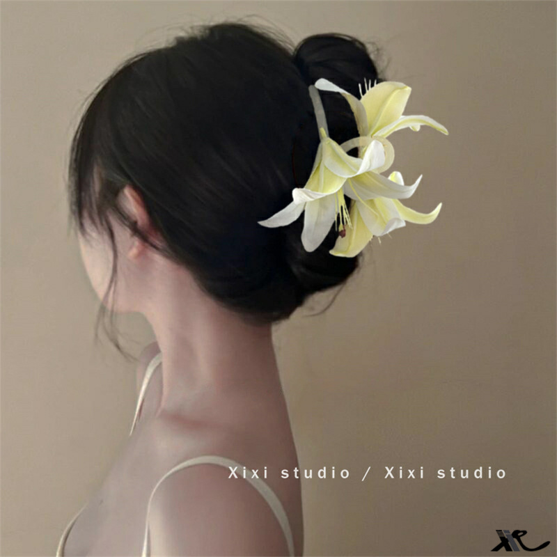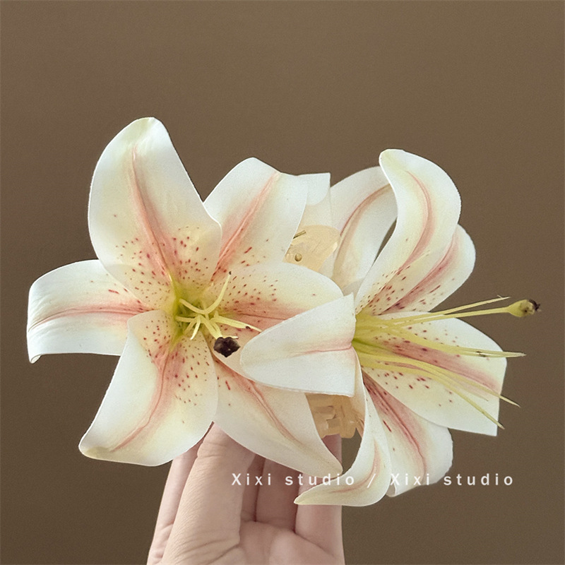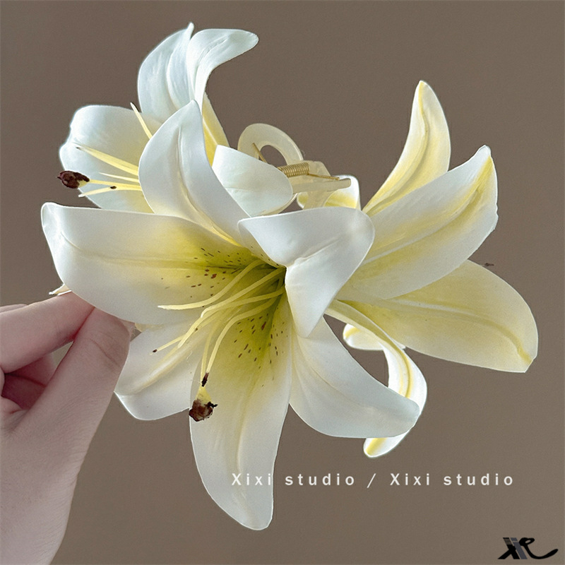 百合花仙~超仙唯美立体百合花朵抓夹女高级感后脑勺鲨鱼夹子头饰