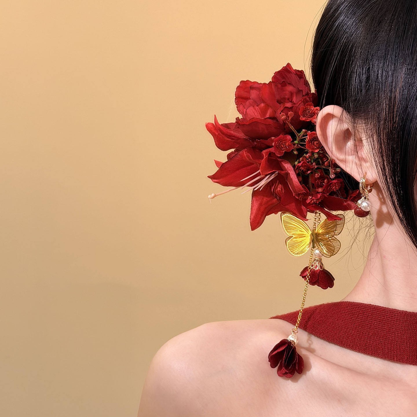 • 3#새로운 스타일의 중국풍 꽃 머리꽂이 - 빨강