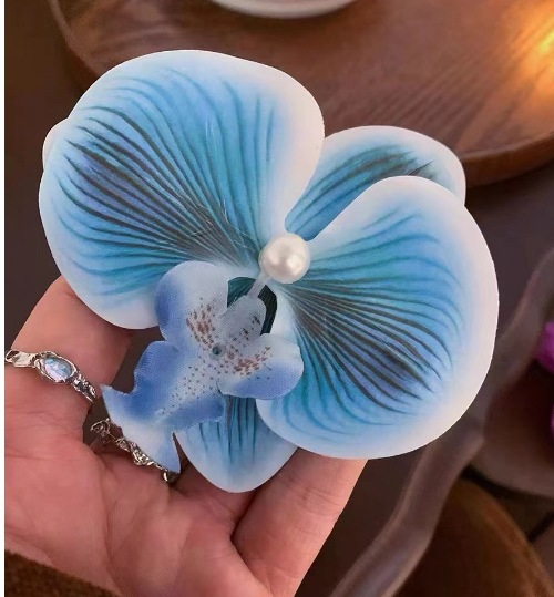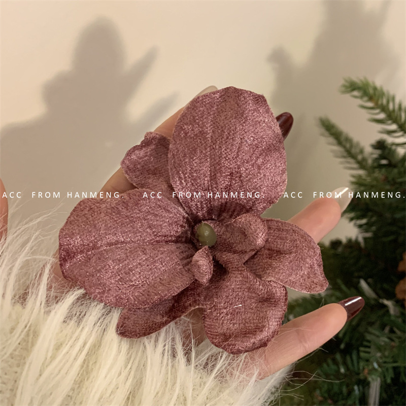 • 27#양란 꽃 머리핀 - 커피색 [3송이]