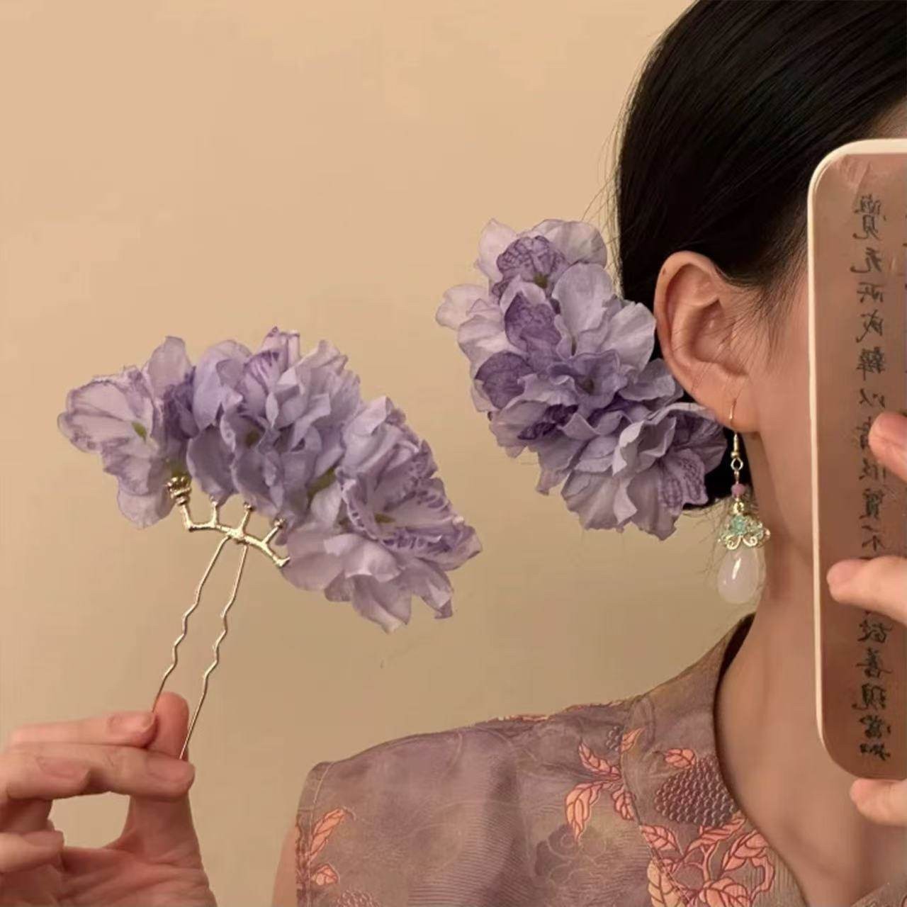 • 53#중국풍 꽃 머리꽂이 - 연보라