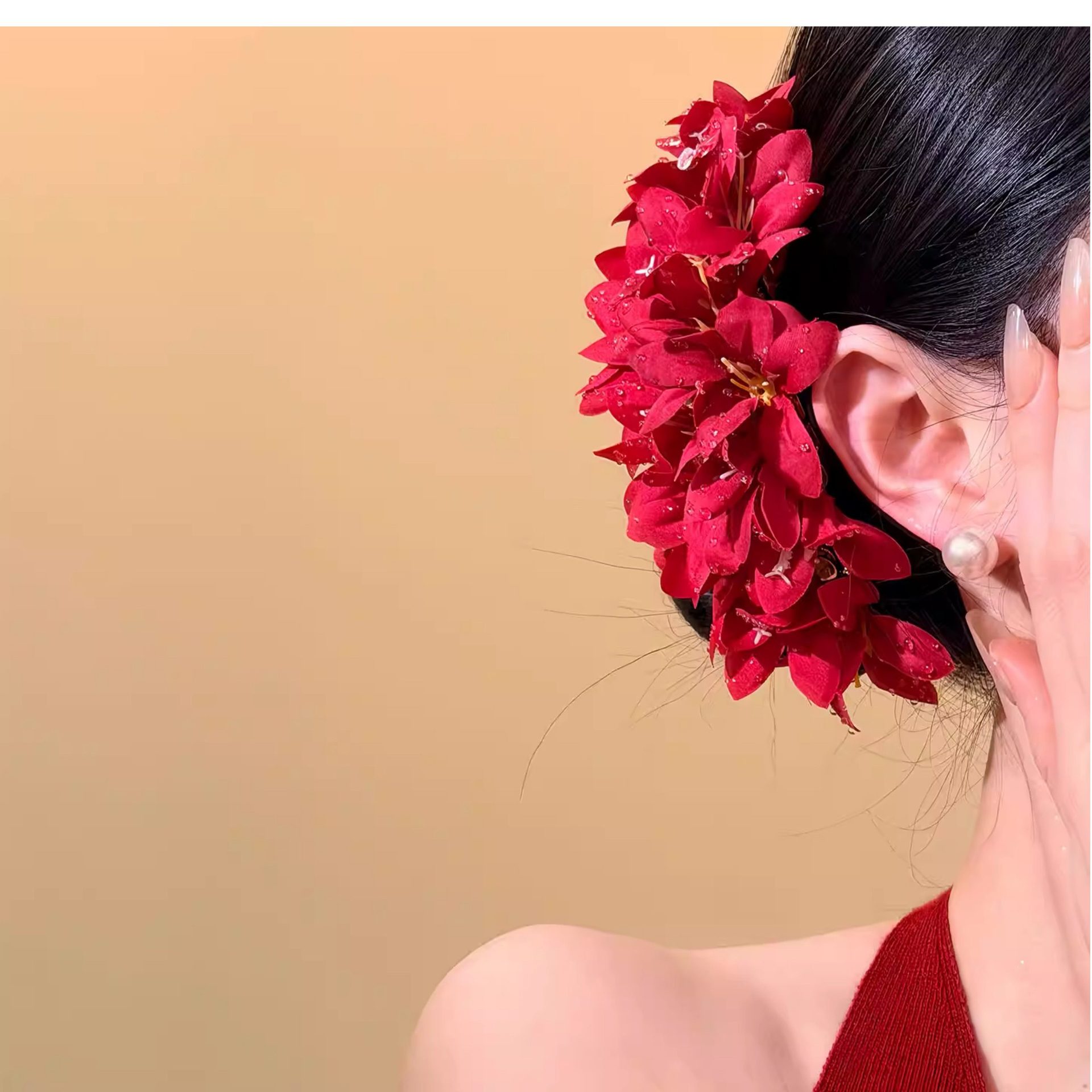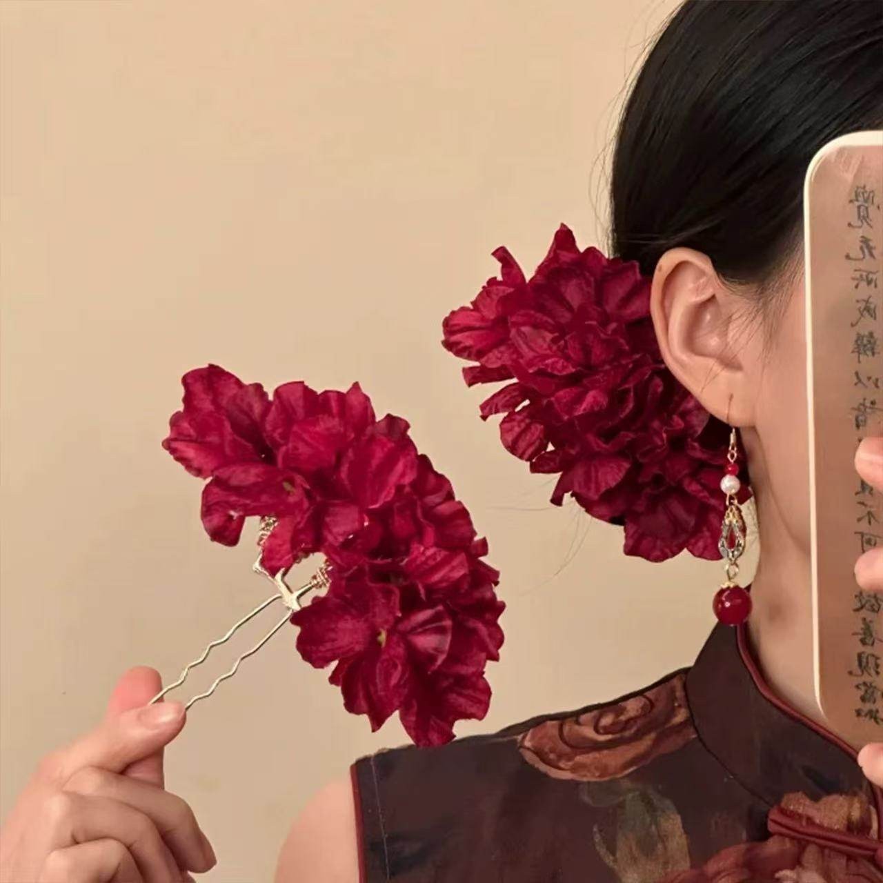 • 8#레트로한 분위기의 붉은 꽃 머리핀
