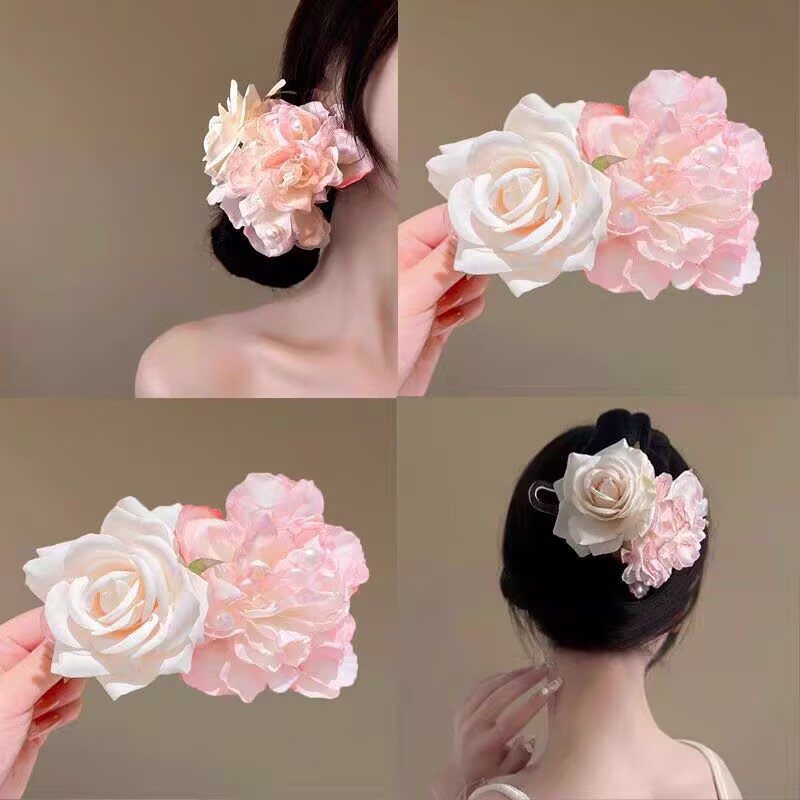 새로운 스타일의 슈퍼 페어리 플라워 헤어핀, 사이드 클립, 헤어 스타일링 도구, 데일리용 거즈 플라워 집게핀, 고급스러운 뒷머리 헤어 액세서리