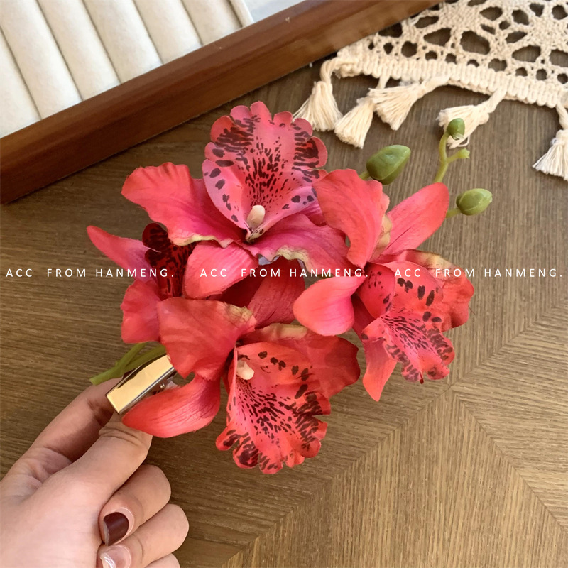 • 26#양란 꽃 머리핀 - 자홍색