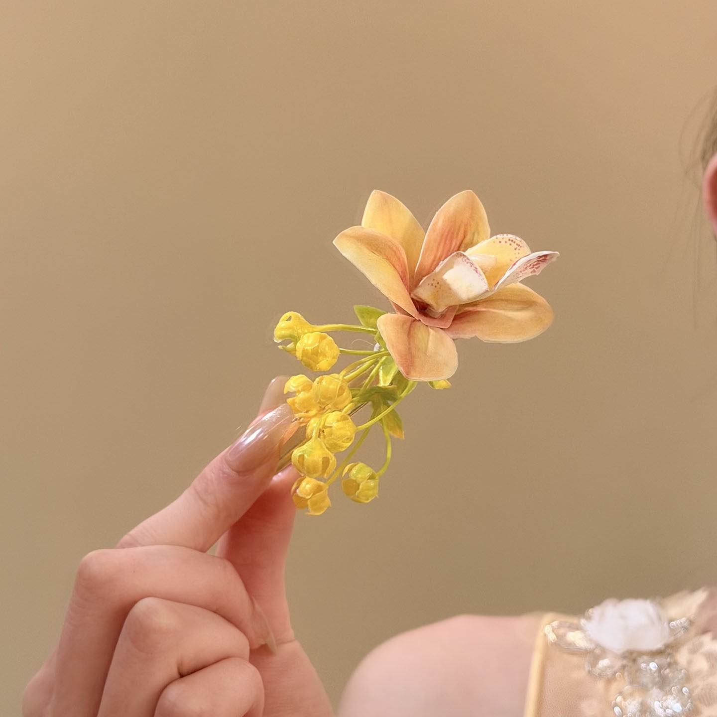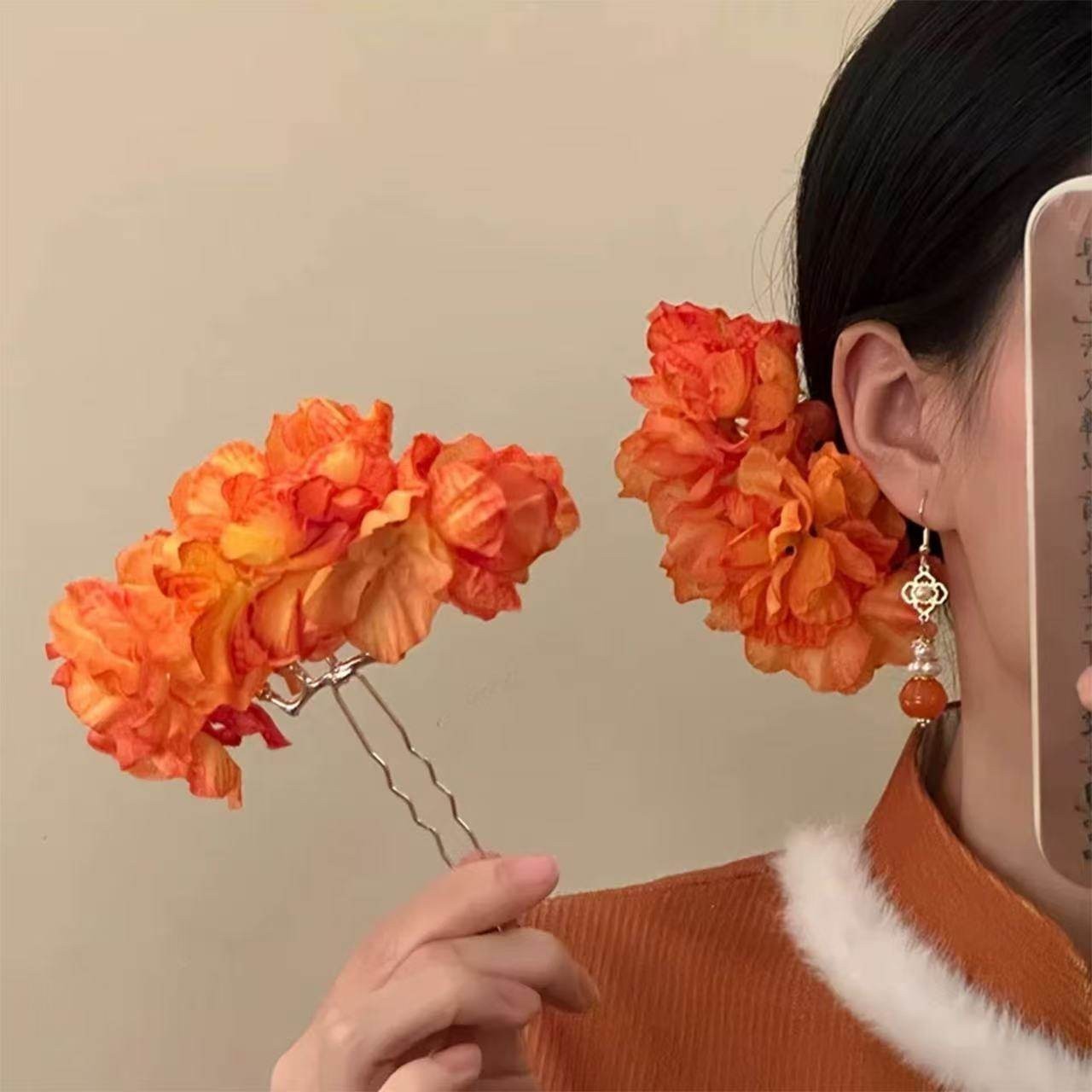 • 5#새로운 스타일의 중국풍 꽃 머리꽂이 - 오렌지색