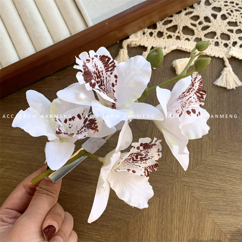 • 25#양란 꽃 머리핀 - 밀크 화이트