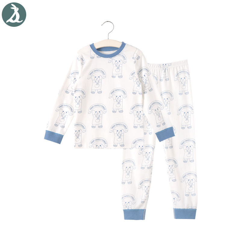 클래스 A 홈 어린이 속옷 세트 소녀 가을 옷과 바지 소년 순면 둥근 목베이스 면 스웨터 따뜻한 가을