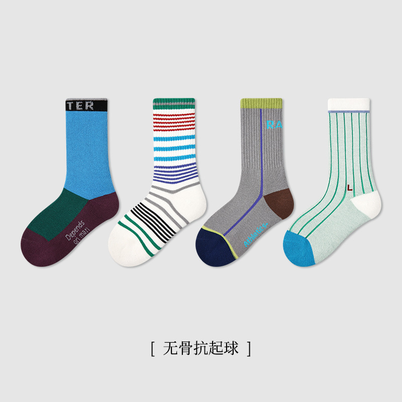 어린이 양말 도매 2025 봄 편지 줄무늬 아기 양말 빗질면 뼈없는 강아지 소년 양말스토어 가기