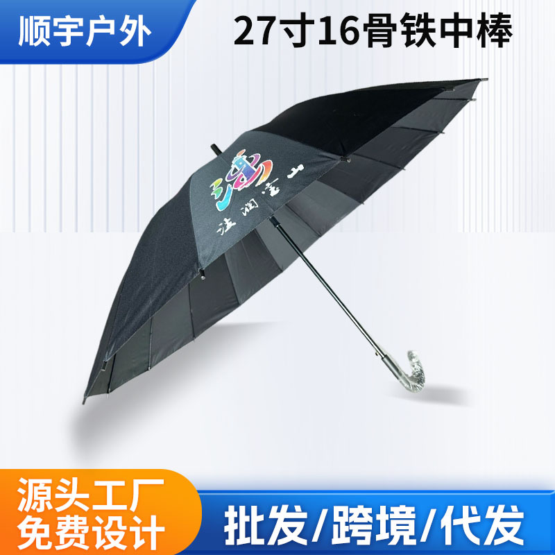 16본 자동 우산, 햇볕과 비 모두를 막아주는 긴 손잡이 우산, 남녀공용, 2인용, 바람에 강한 직선형 우산, 광고 로고 인쇄, 방풍 기능스토어 가기