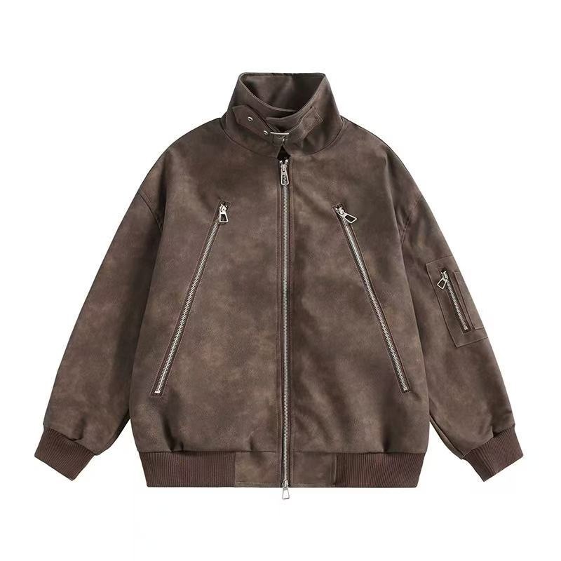 미국 스타일 다양한 크로스보더 레트로 패션 남녀 가죽 재킷 봄 가을 트렌디 브랜드 멋스러운 고급스러운 바이커 재킷스토어 가기