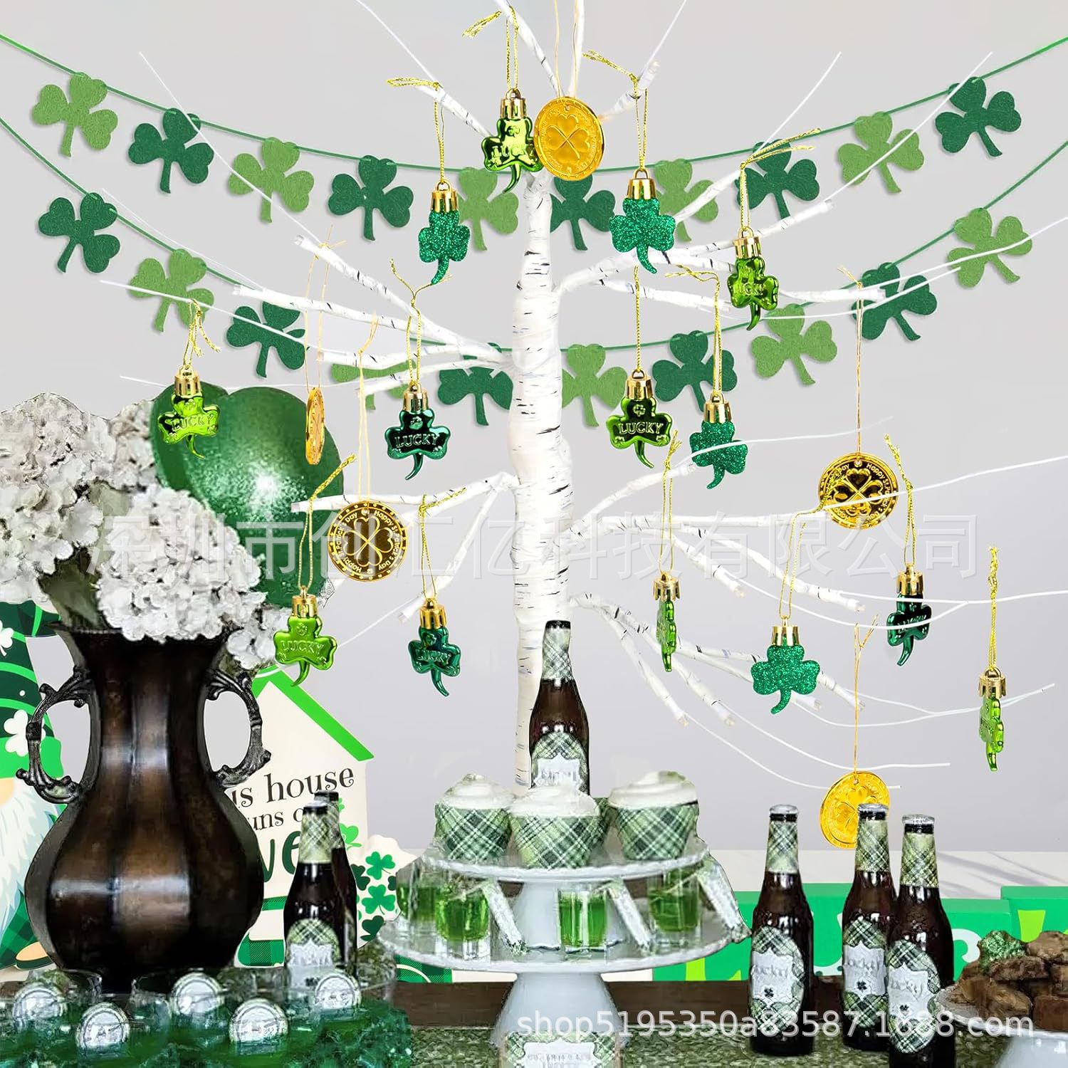 성 패트릭의 날 크리스마스 트리 장식-클로버 굿 럭 네 잎 클로버 코인 스트리트