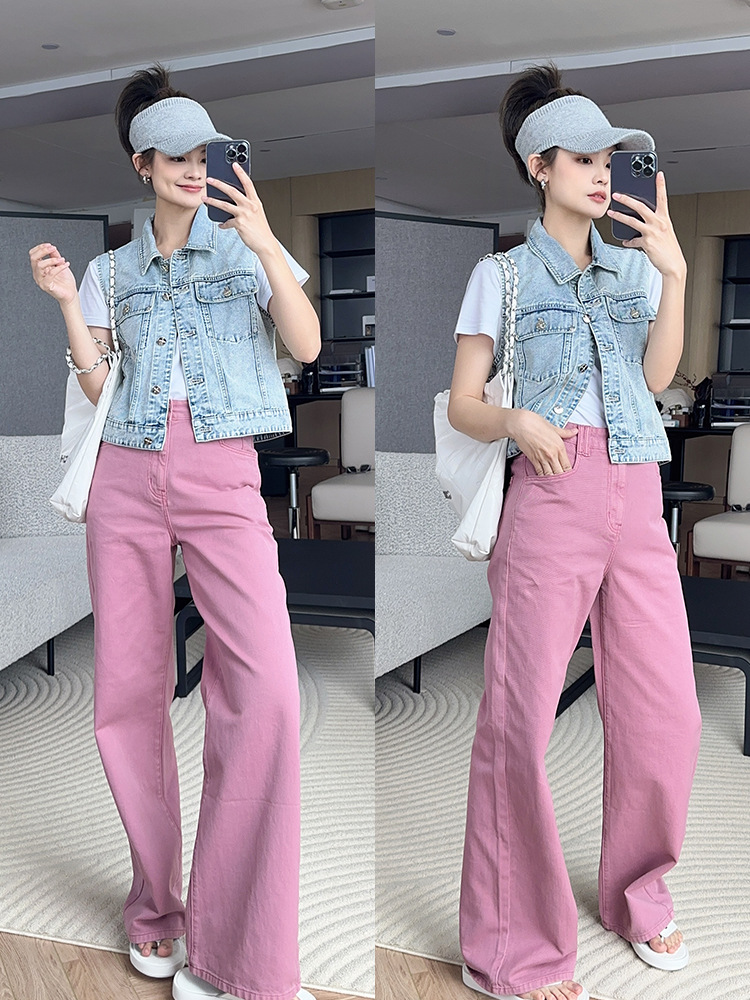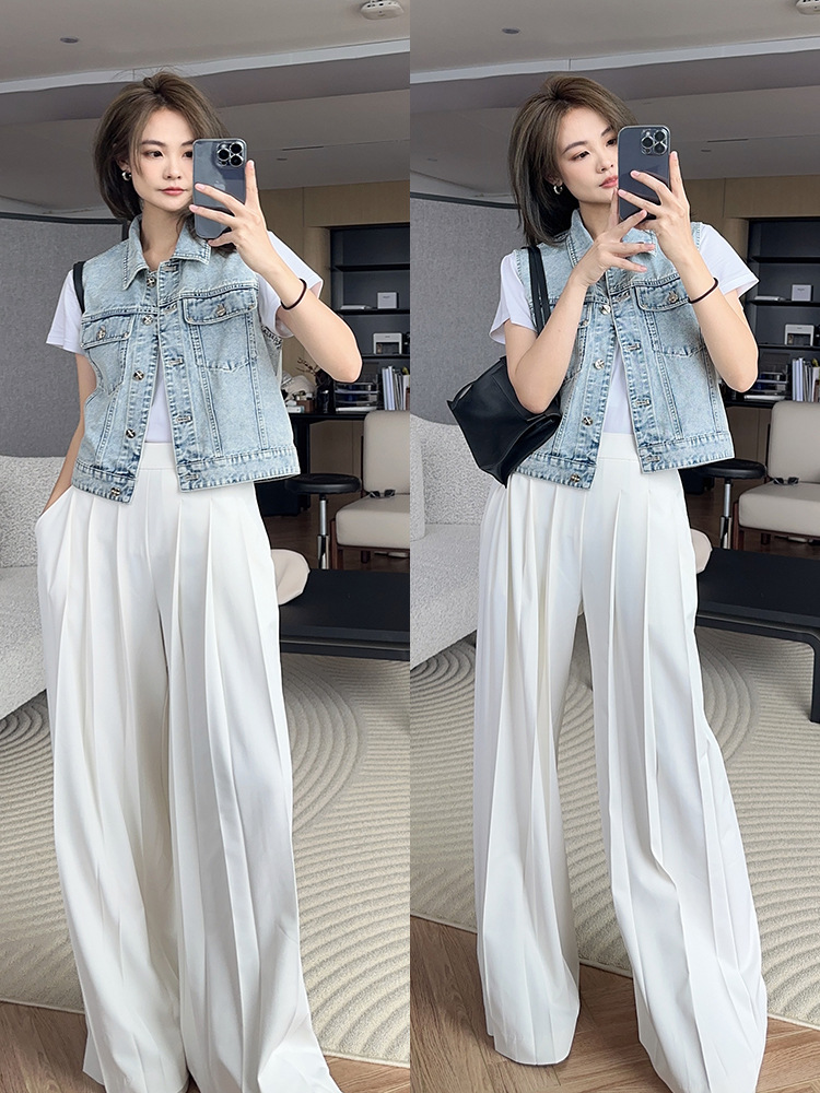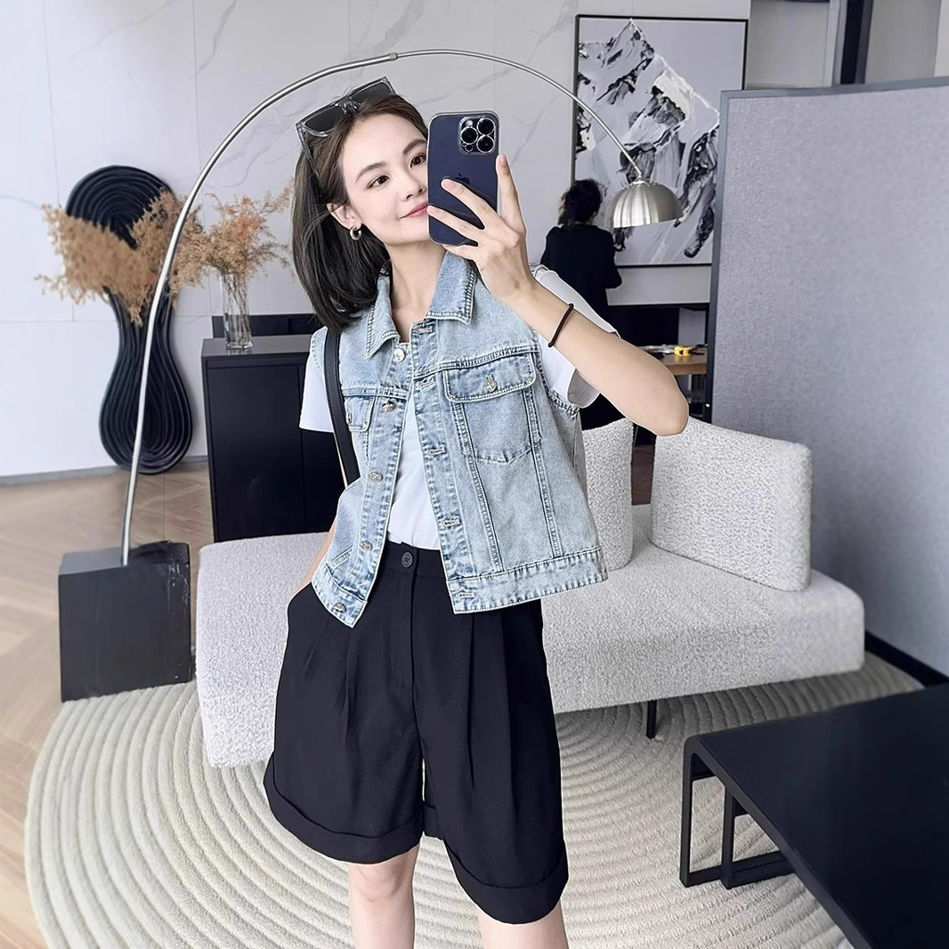 샤오 샹 스타일 데님 조끼 여성 2025 새로운 한국 스타일 디자인 센스 중공업 워시 워터 레트로 실버 버클 스트레이트 말 클립 트렌디