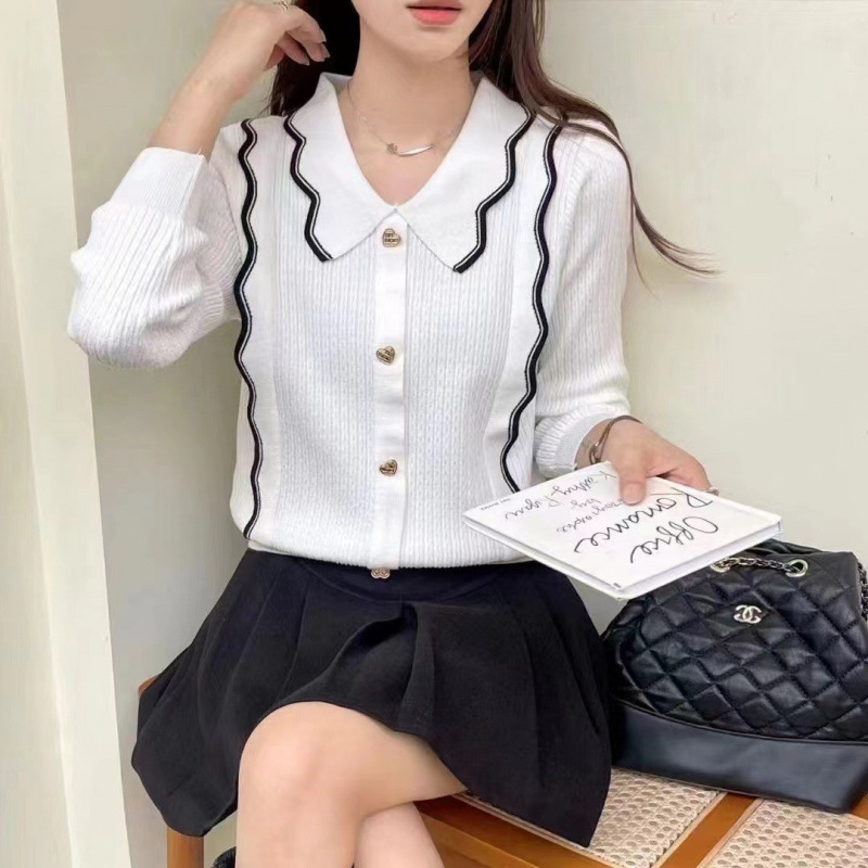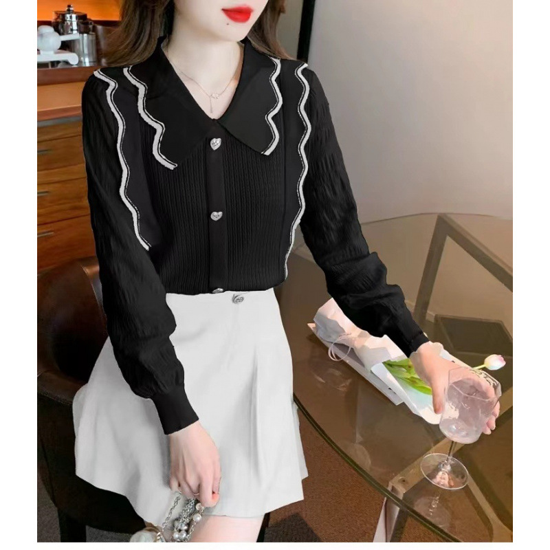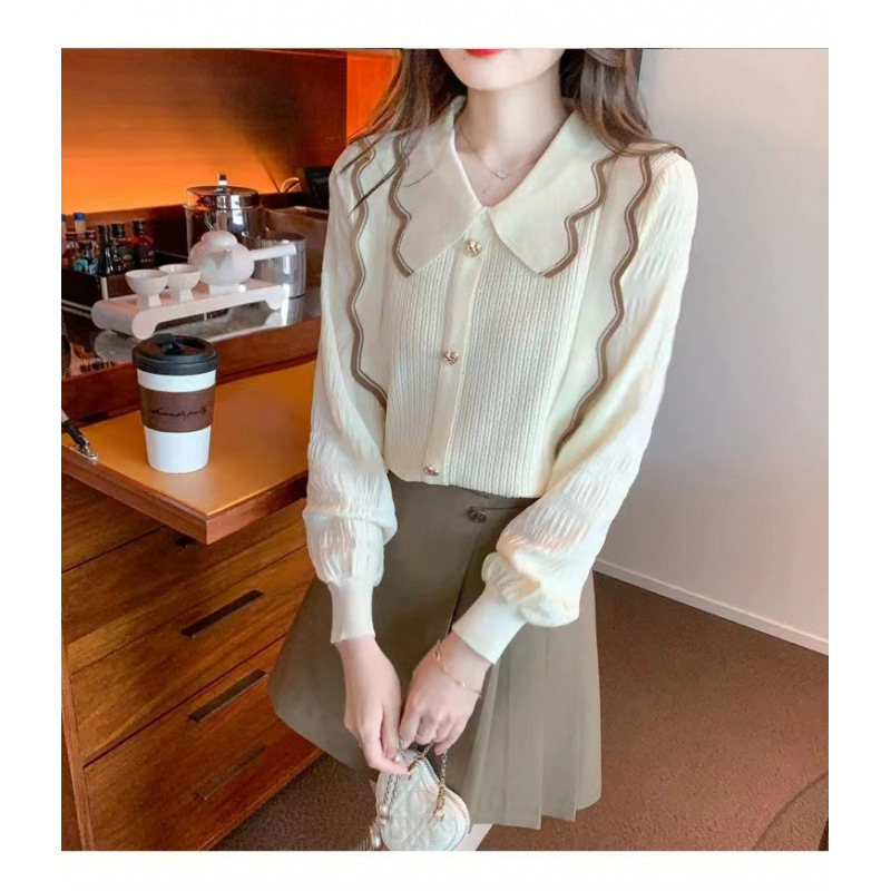 달콤한 인형 칼라 긴 소매 쉬폰 셔츠 여성의 가을 디자인 센스 틈새 최고 패션 서양 스타일 올 매치 작은 셔츠