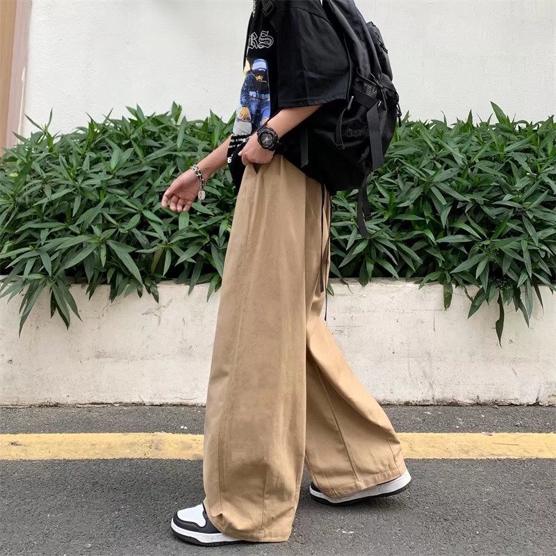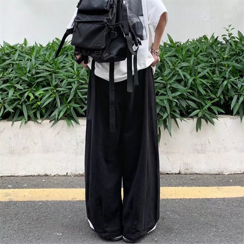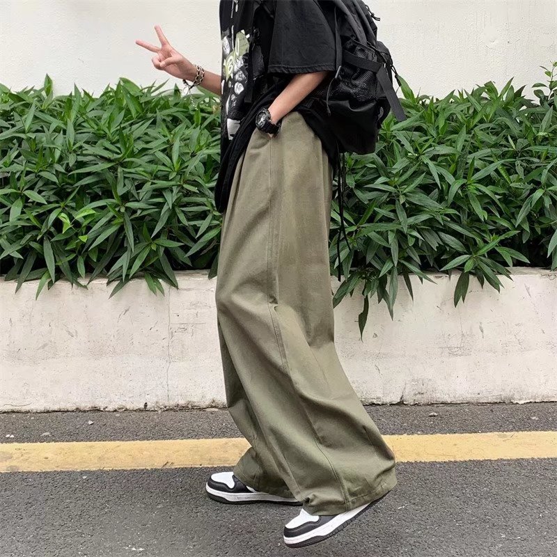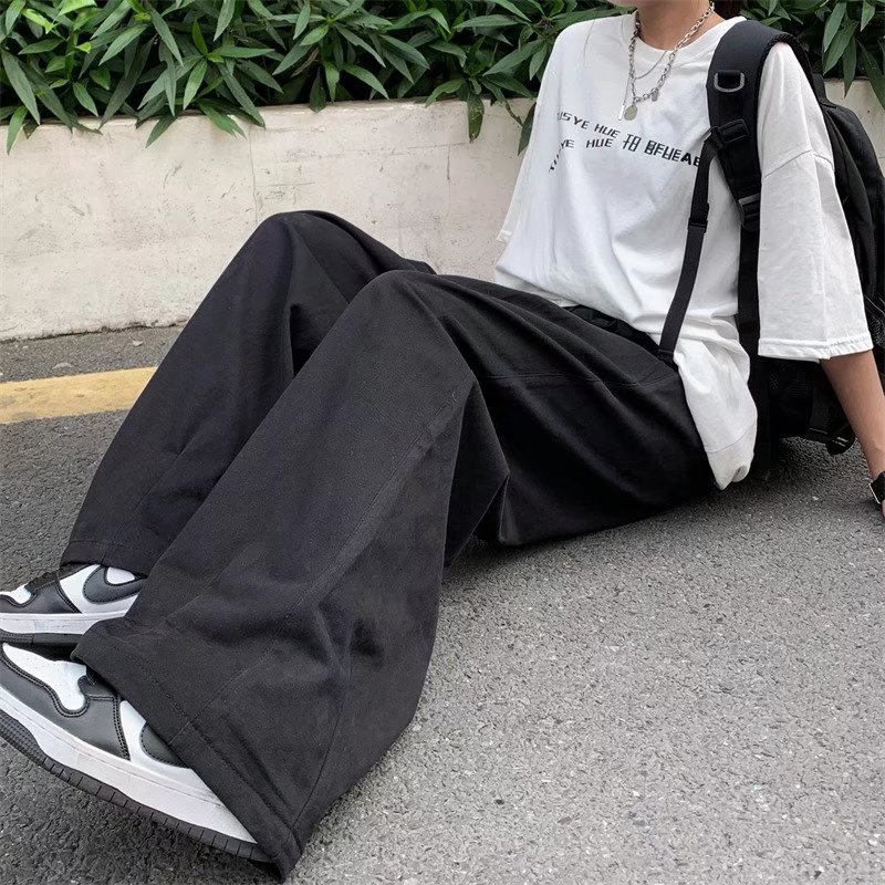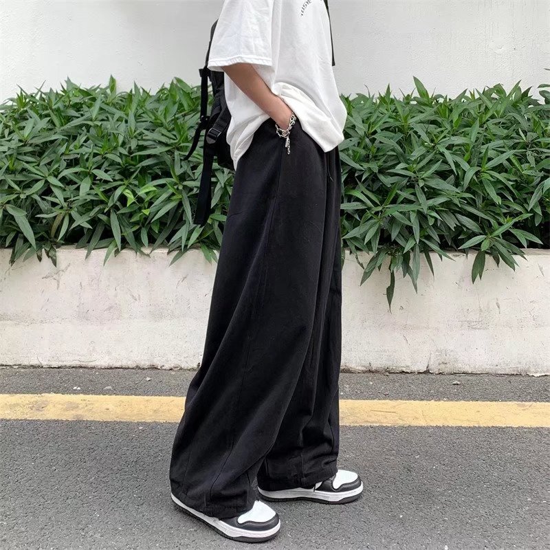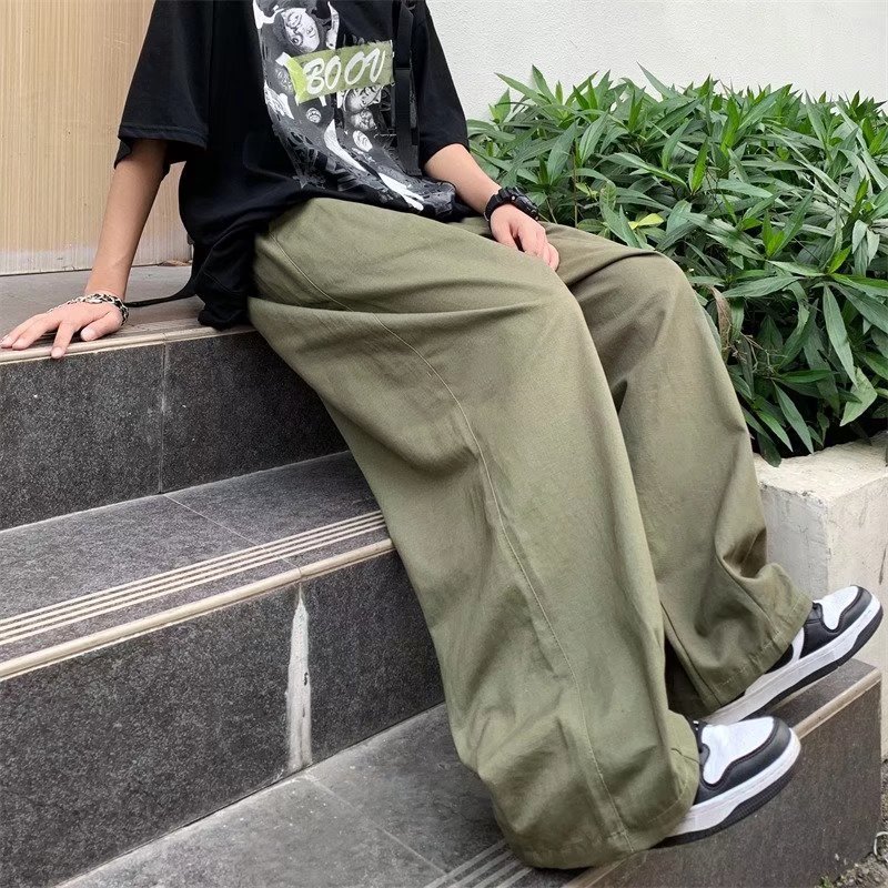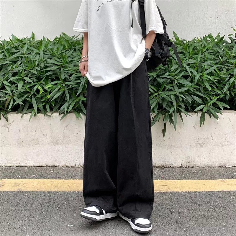 빈티지 스트레이트 캐주얼 팬츠 남성용 트렌디 인 하이 스트리트 트렌디 브랜드 팝 팬츠 홍콩 스타일 루즈 와이드 레그 롱 팬츠