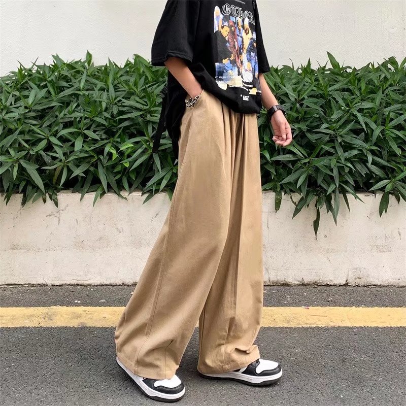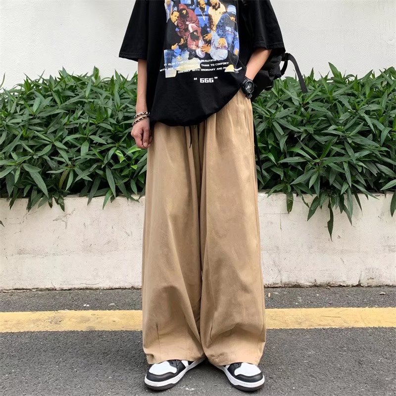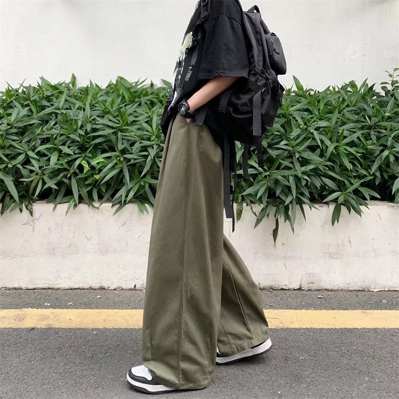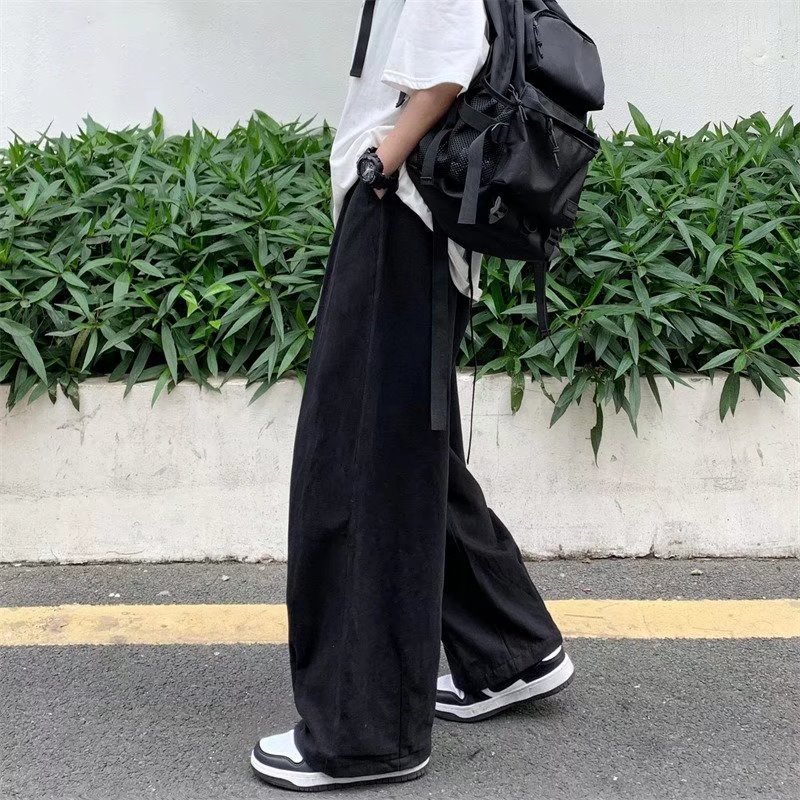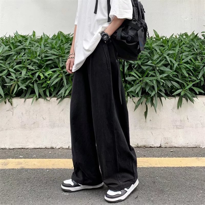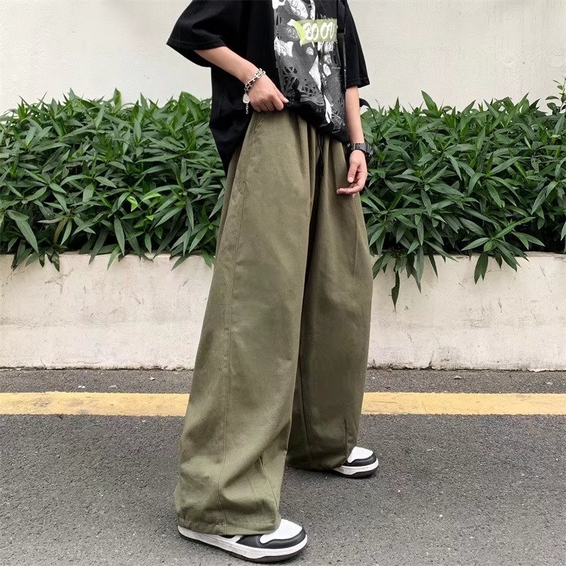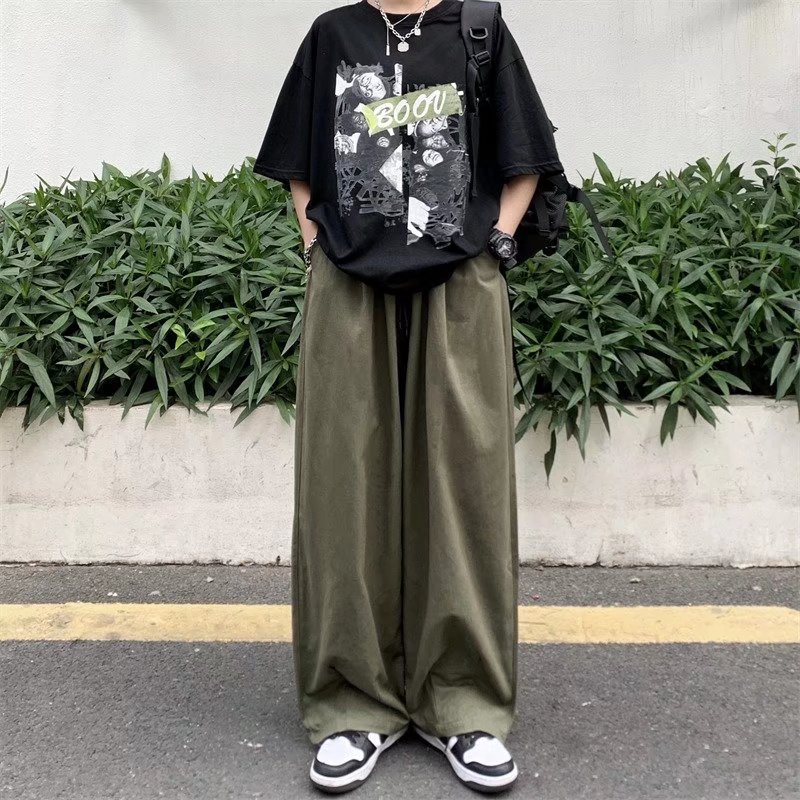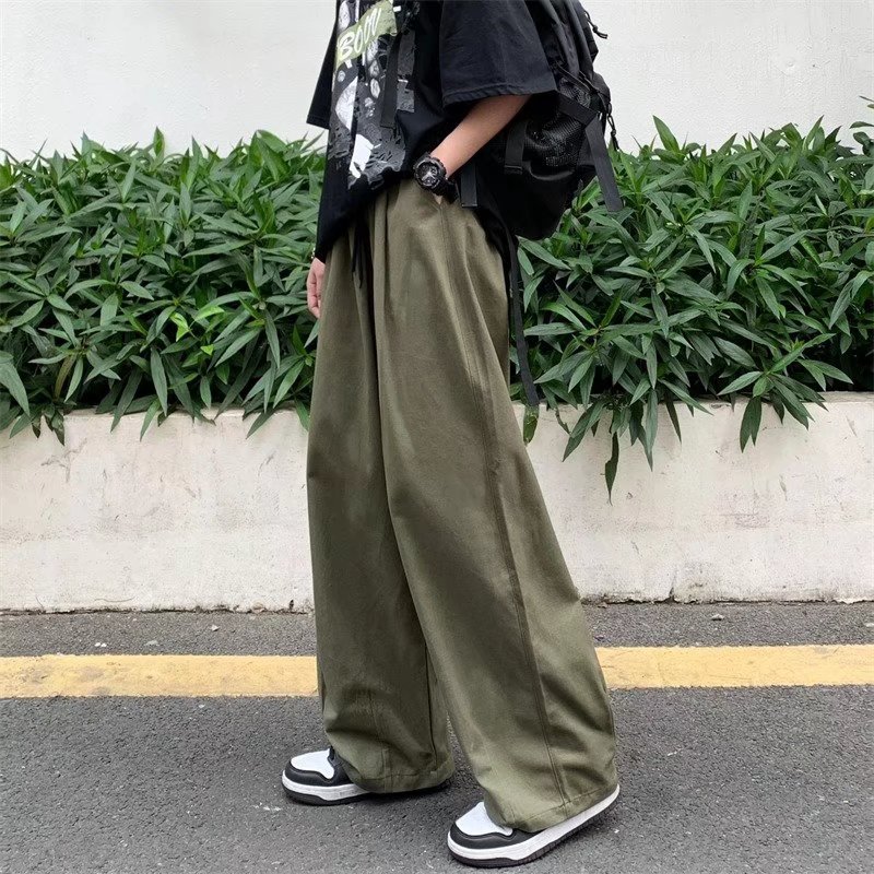 빈티지 스트레이트 캐주얼 팬츠 남성용 트렌디 인 하이 스트리트 트렌디 브랜드 팝 팬츠 홍콩 스타일 루즈 와이드 레그 롱 팬츠