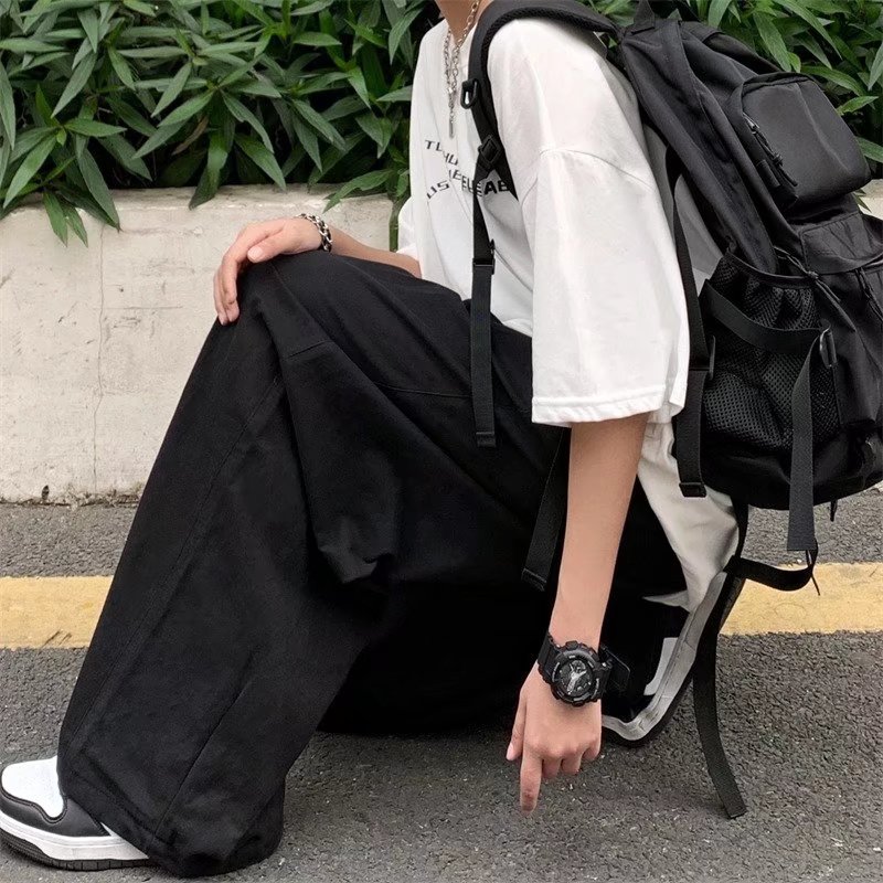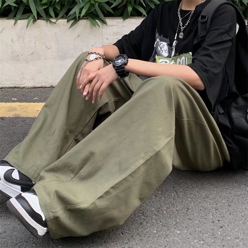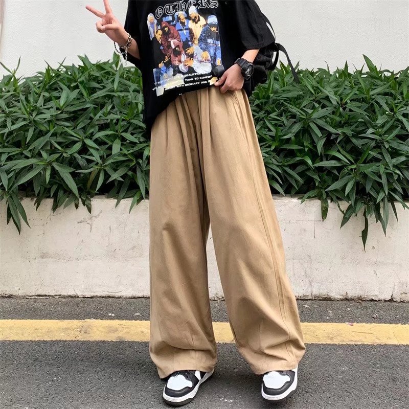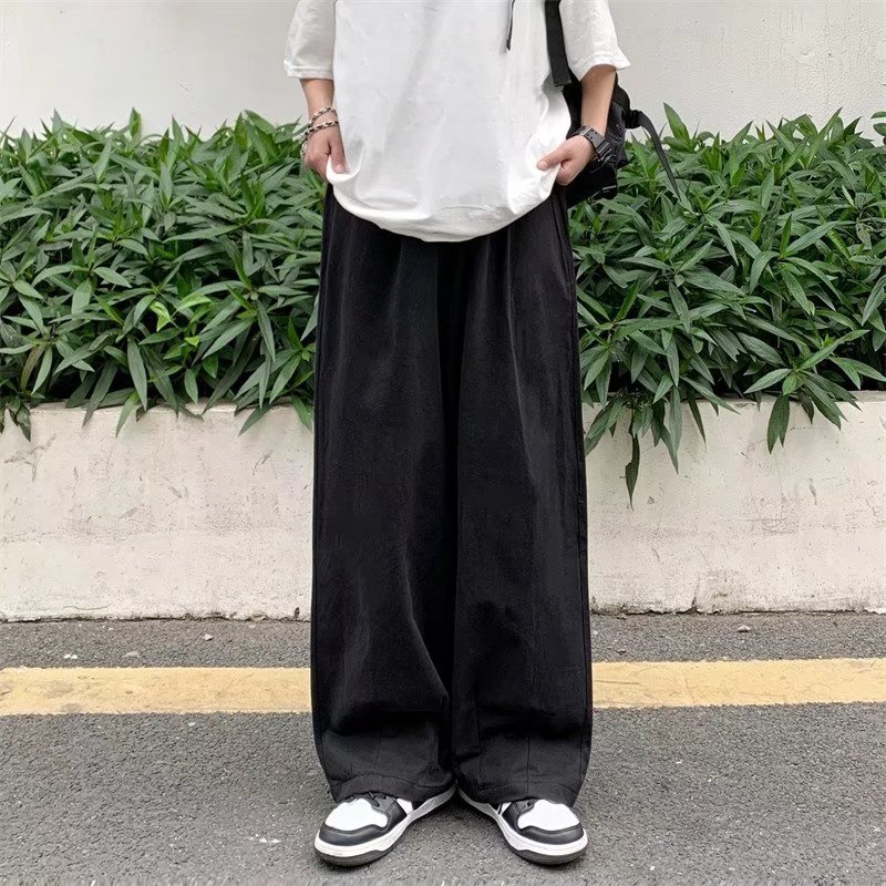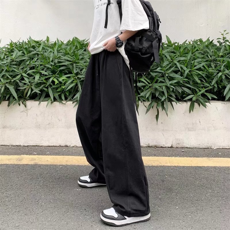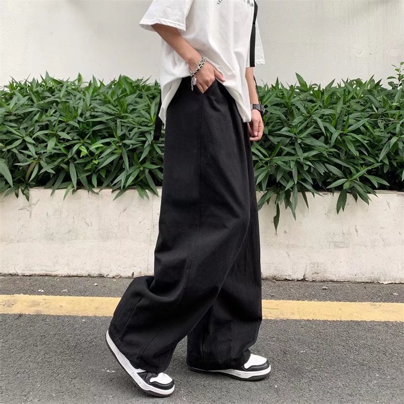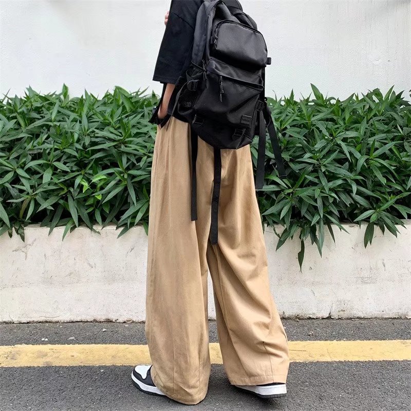 빈티지 스트레이트 캐주얼 팬츠 남성용 트렌디 인 하이 스트리트 트렌디 브랜드 팝 팬츠 홍콩 스타일 루즈 와이드 레그 롱 팬츠