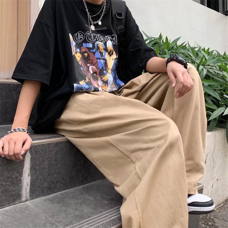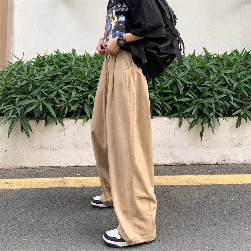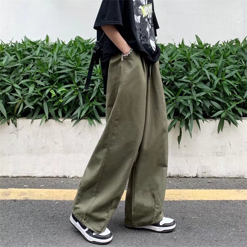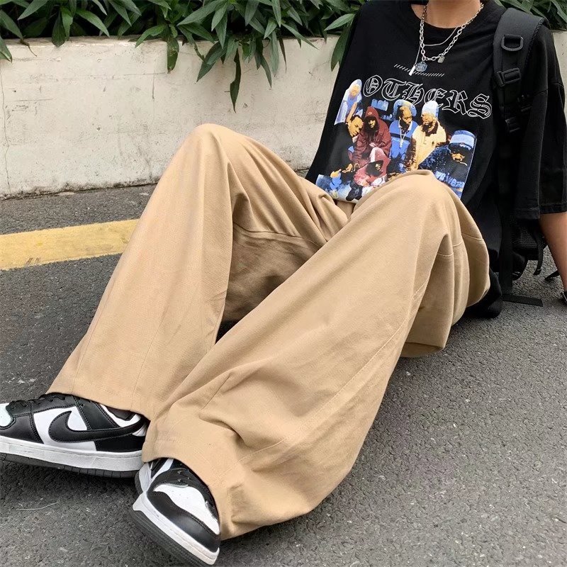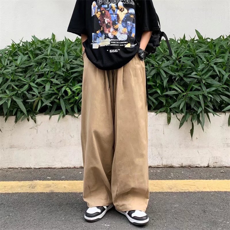 빈티지 스트레이트 캐주얼 팬츠 남성용 트렌디 인 하이 스트리트 트렌디 브랜드 팝 팬츠 홍콩 스타일 루즈 와이드 레그 롱 팬츠스토어 가기