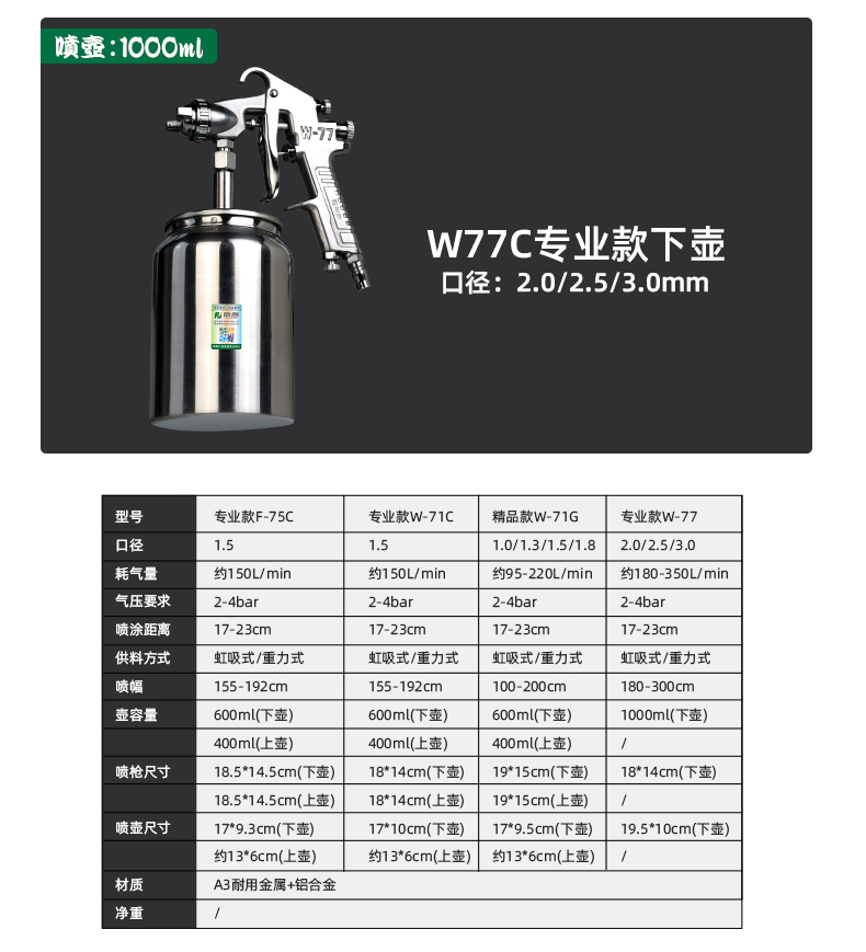 • W71G 스프레이 페인트 건 1.0 하부 냄비(철 상자 버전)