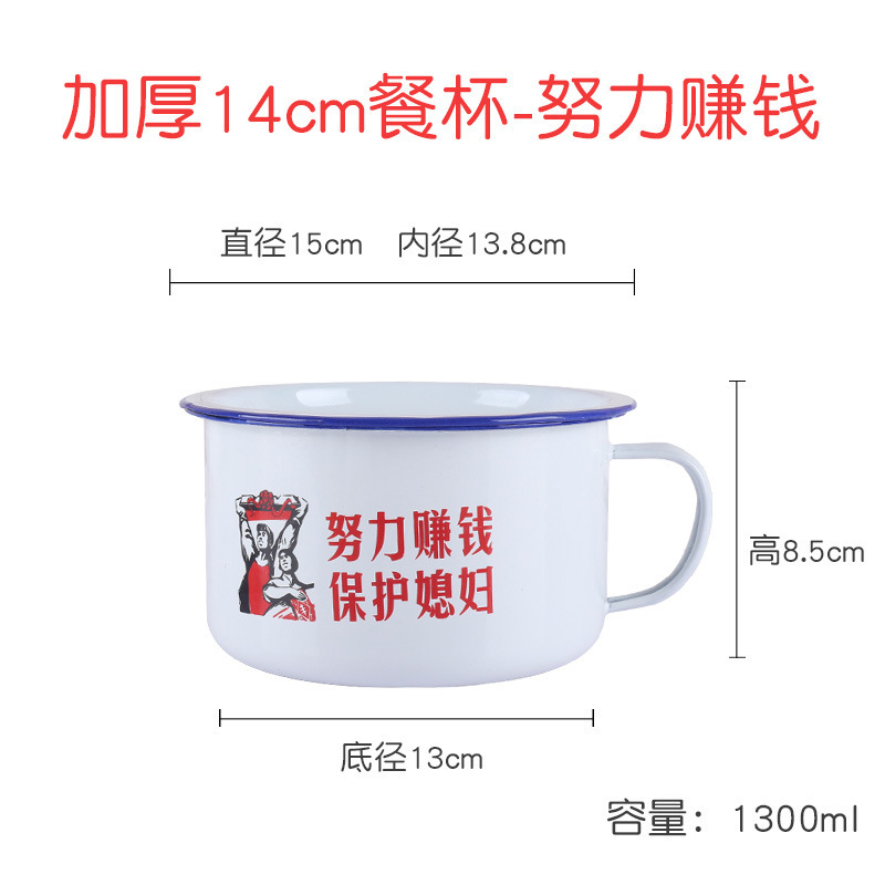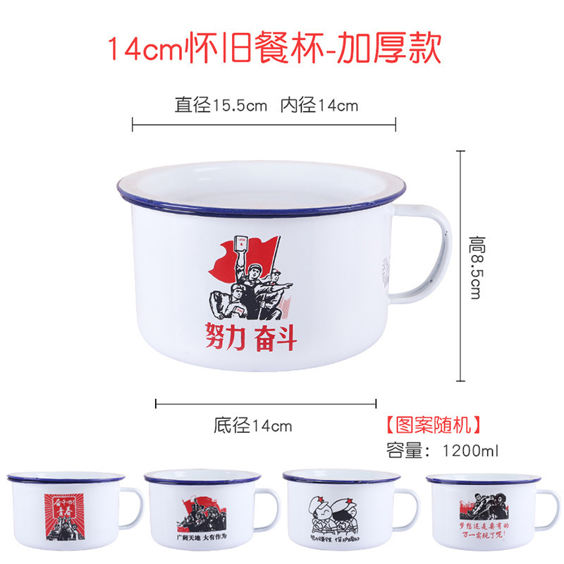에나멜 번호 두꺼운 패스트 푸드 컵 향수를 불러 일으키는 레트로 구식 도시락 매점 학생들이 도시락 작업을하고 있습니다.스토어 가기