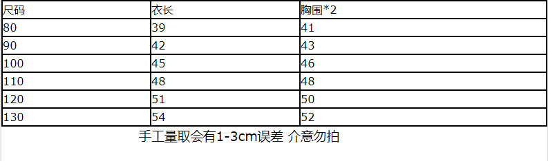 尺码 衣长 胸围*2