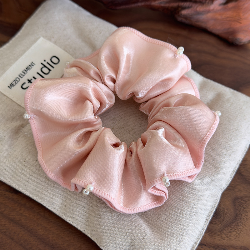 손으로 꿰매는 구슬 귀 테두리 주름 실크 헤어 링 여성의 2024 새로운 스타일 간단한 기본 헤어 로프 여성용 고급 헤어 로프스토어 가기