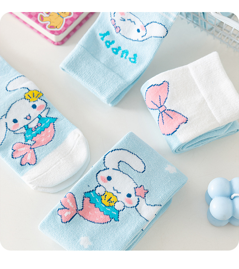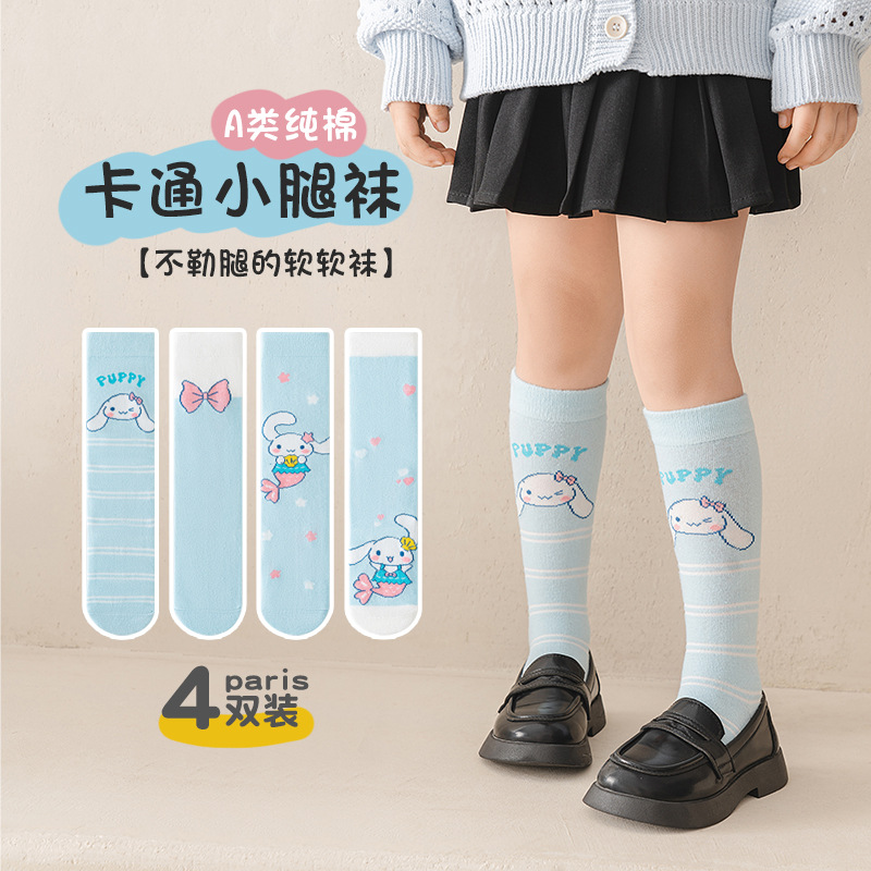 봄과 가을 새로운 소녀 Yugui 개 발 양말 여성의 보물 달콤한 만화 긴 튜브 무릎 양말 스트레이트 플레이트 중 큰 어린이 면 양말