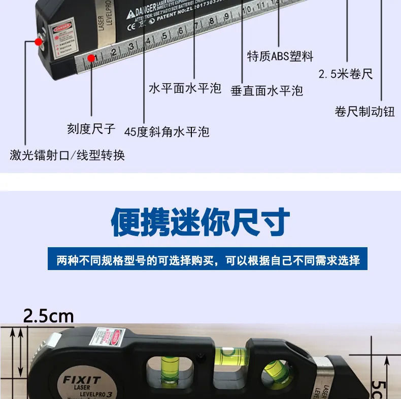 레이저 적외선 레벨 크로스 라인 다기능 라인 프로젝터 레벨 테이프 미터 고정밀 측정 도구 공장