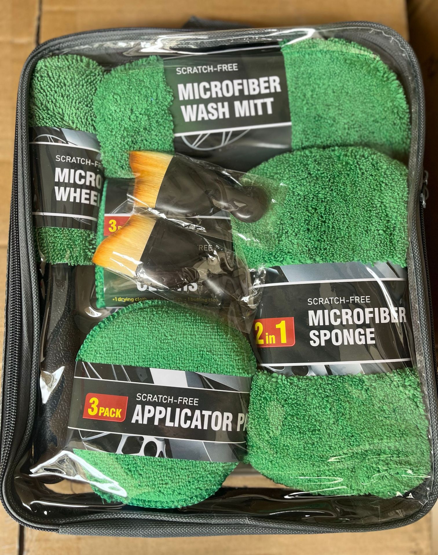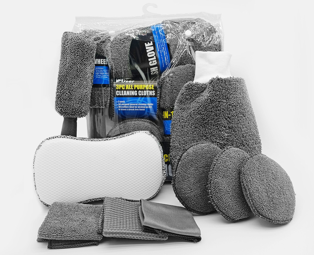 内含产品:汽车轮胎刷1件+毛巾布打蜡饼3个+8字型高低毛洗车海绵块+玻璃巾/经编毛巾/华夫格+高低毛手套1只