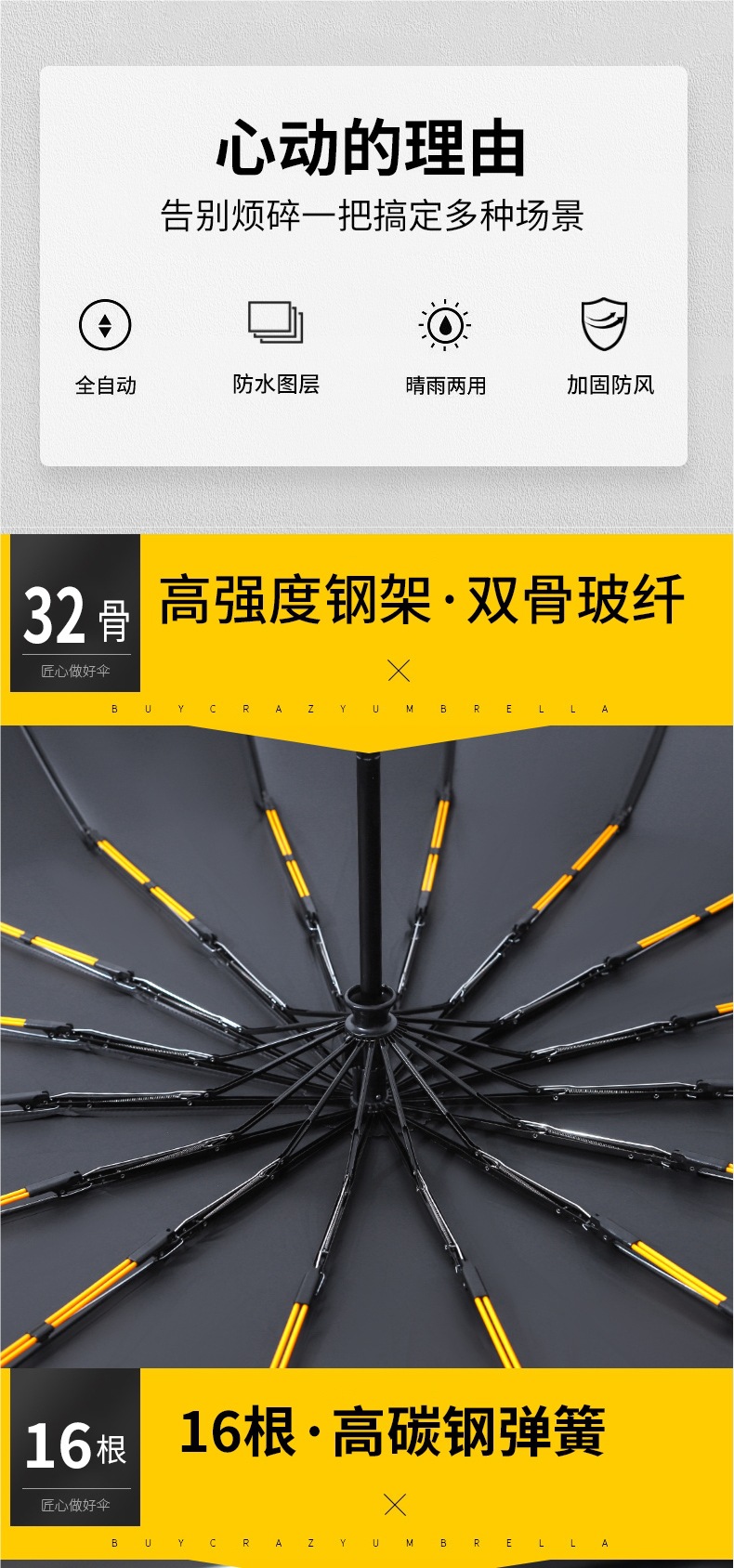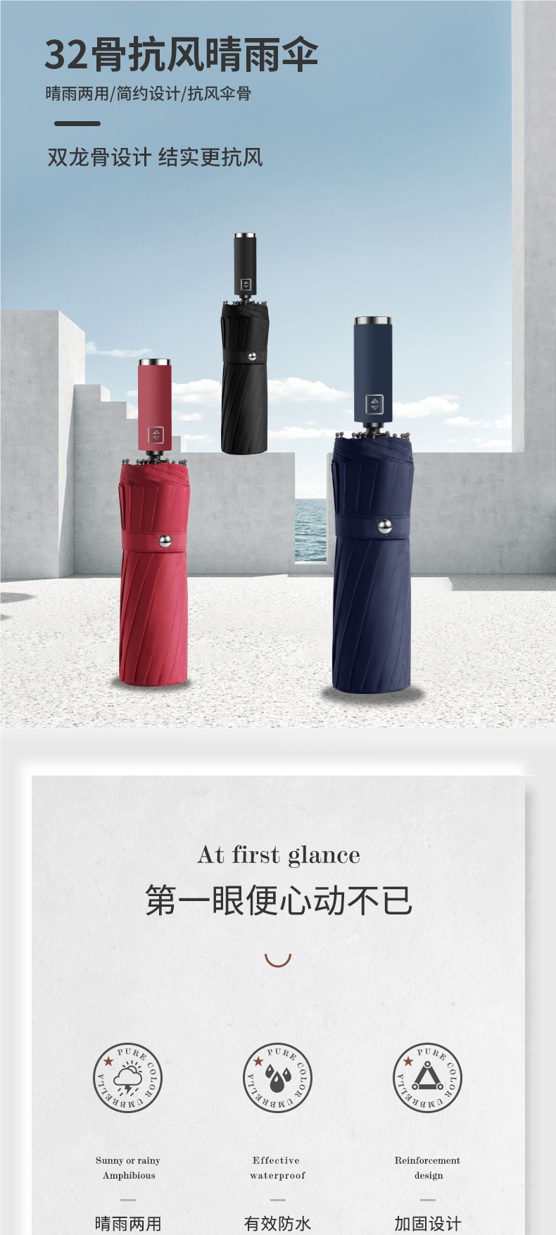 32-뼈 완전 자동 접히는 우산 대형 남성용 강화 강한 바람에 강한 햇빛 우산 여성용