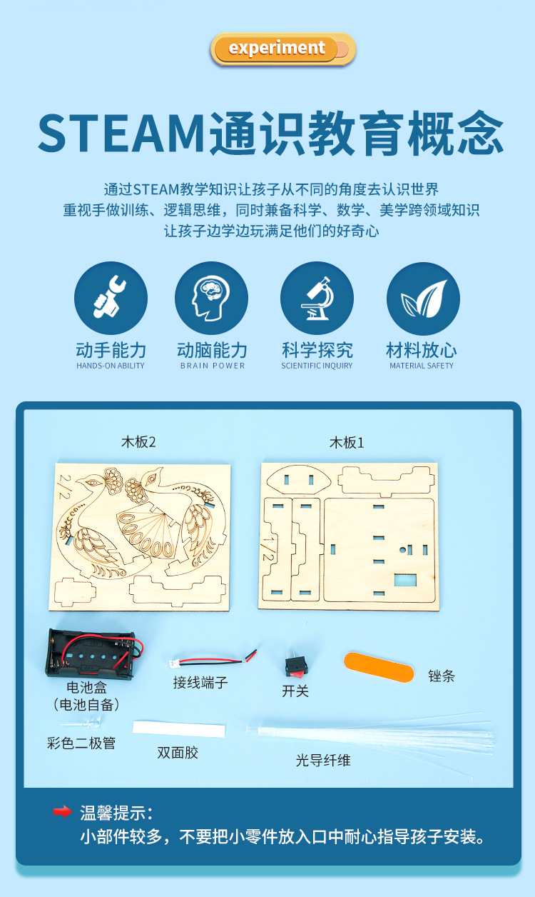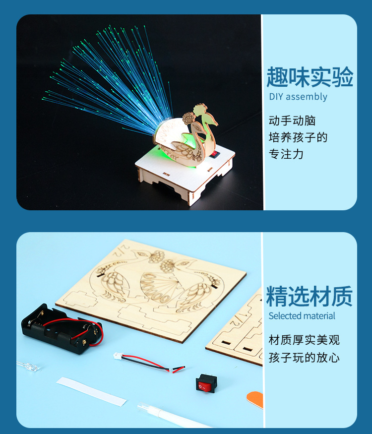 과학 실험 DIY 공작 오픈 스크린 광섬유 램프 기술 작은 생산 어린이 수제 증기 소재 패키지 세트스토어 가기