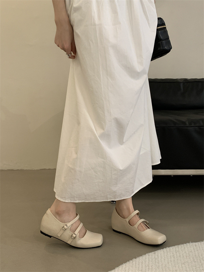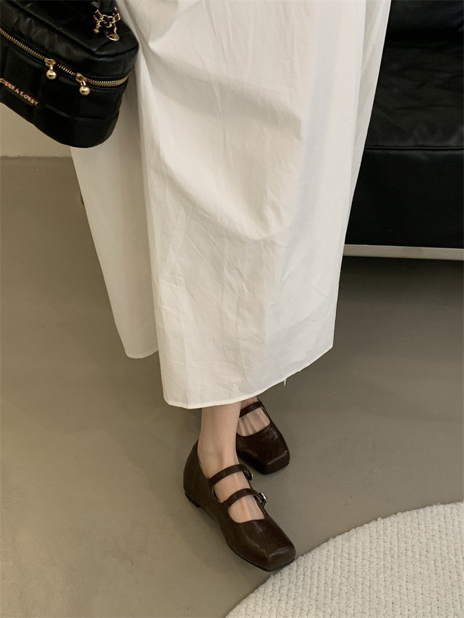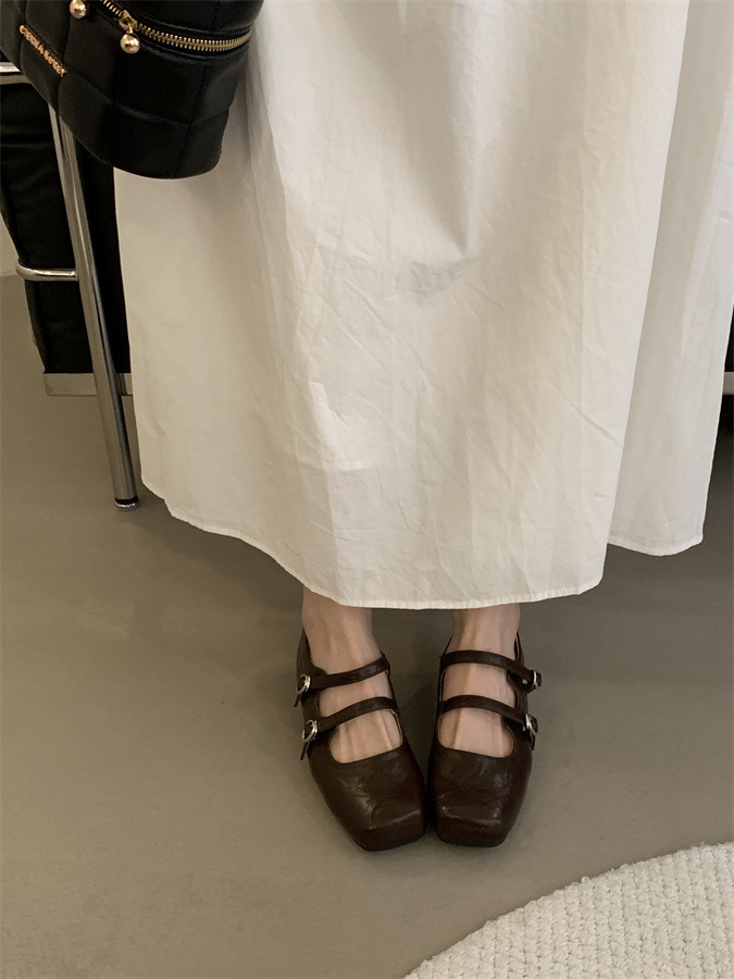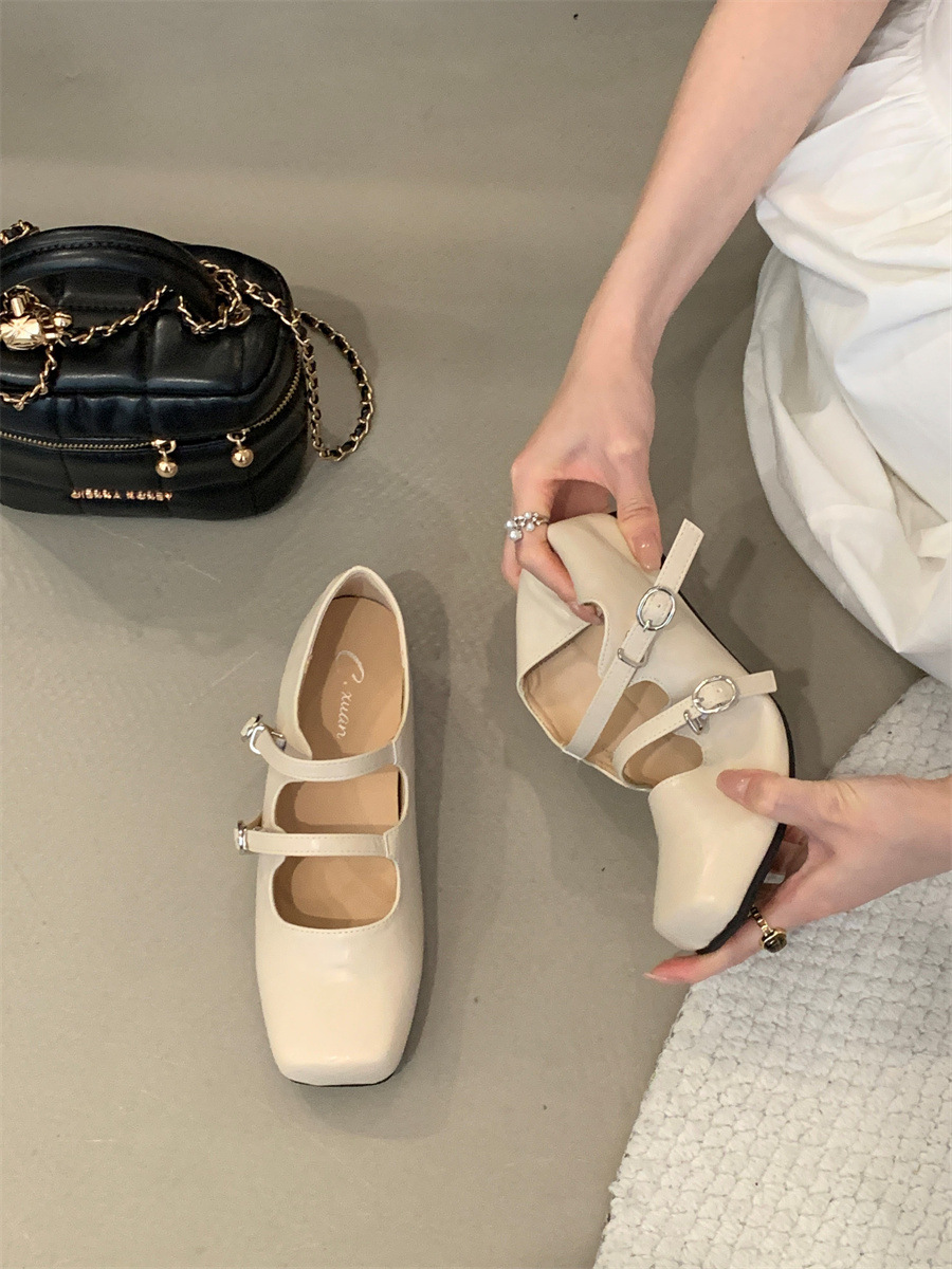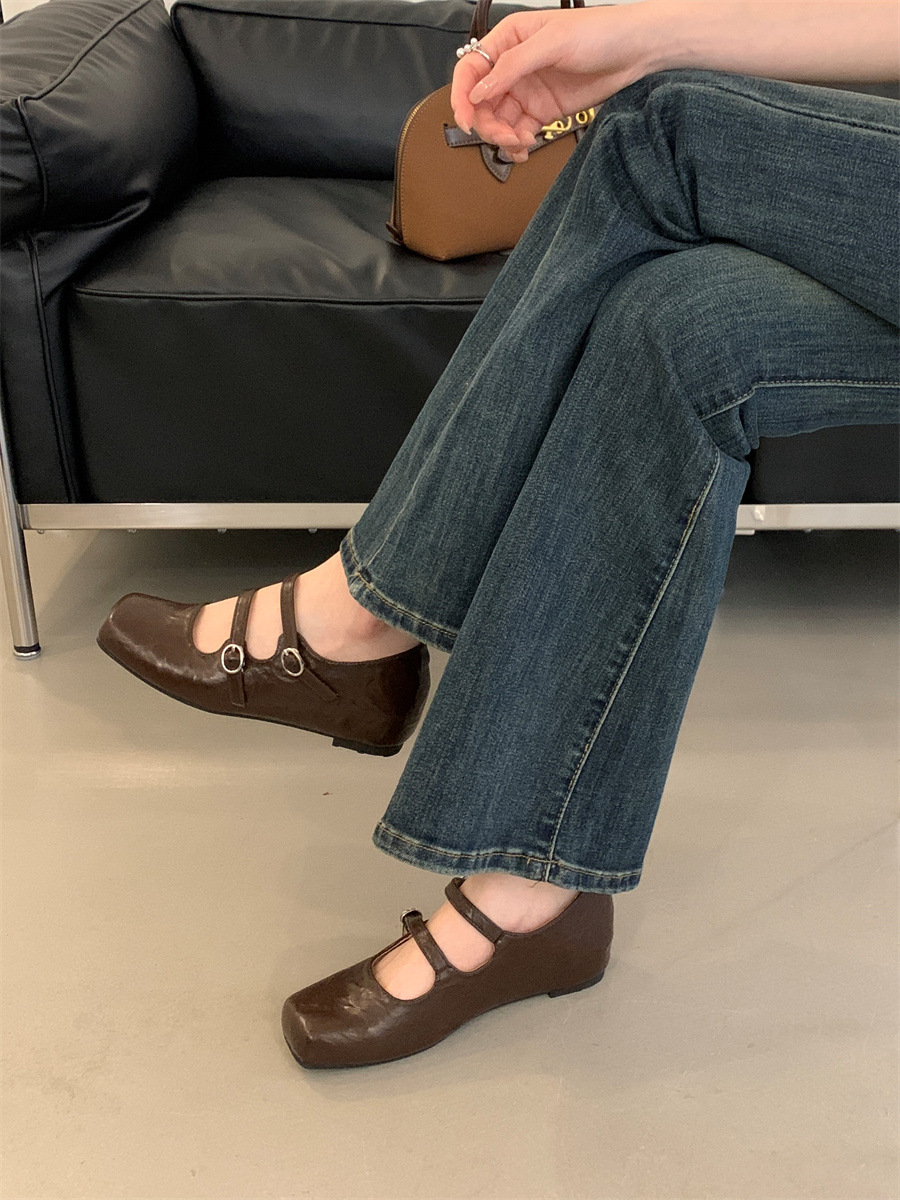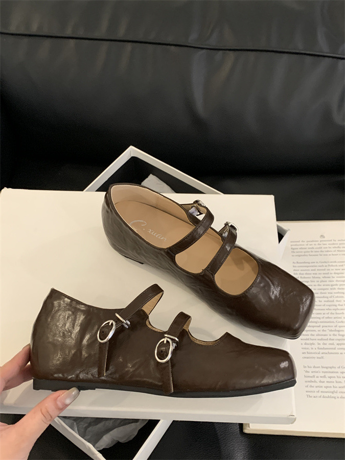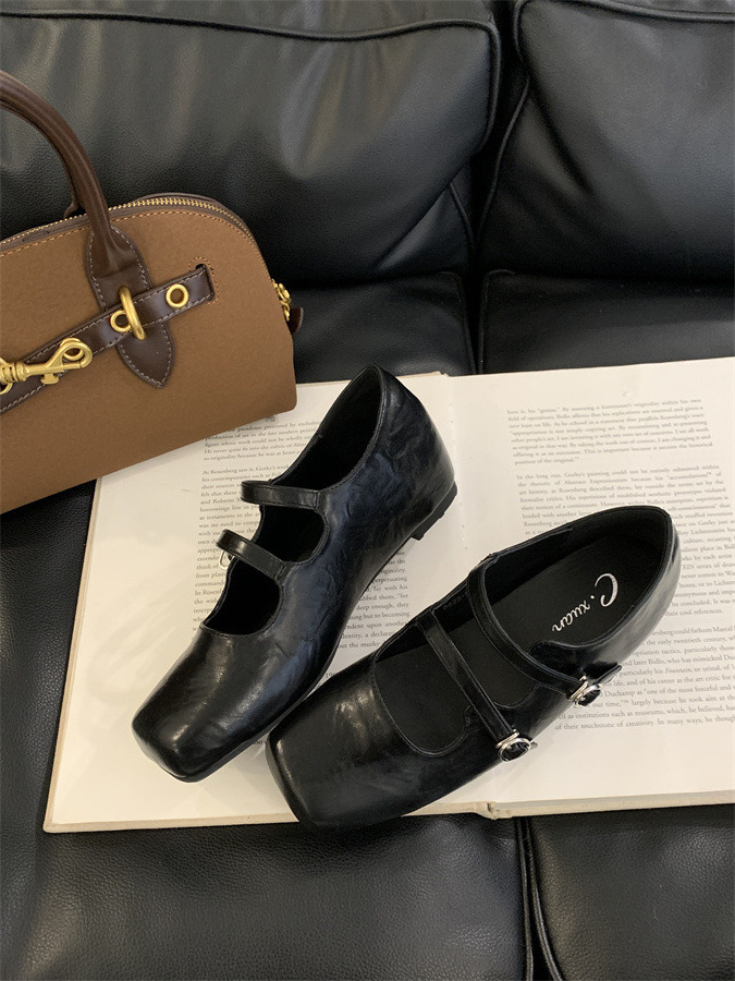 레트로 스타일의 더블 브레스트 버클 스퀘어 헤드 메리 제인 신발 여성 2025 봄 새로운 부드러운 가죽 부드러운 바닥 얕은 입 신발스토어 가기