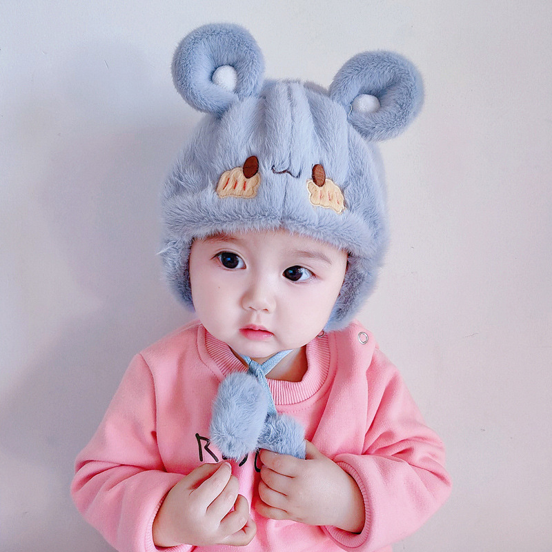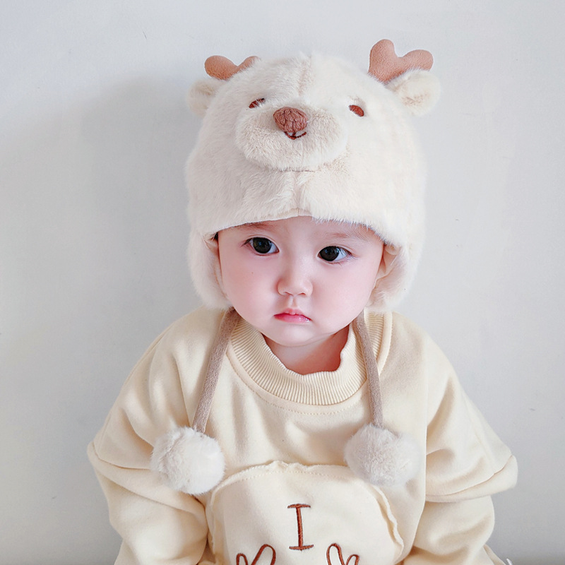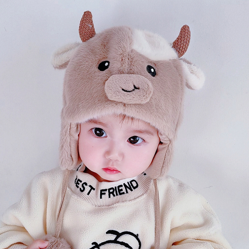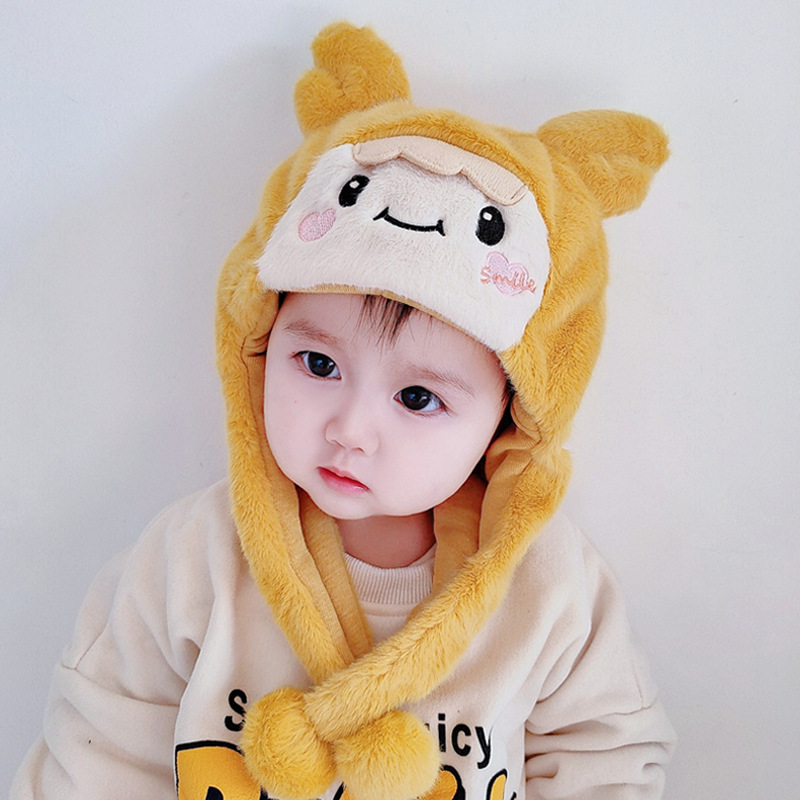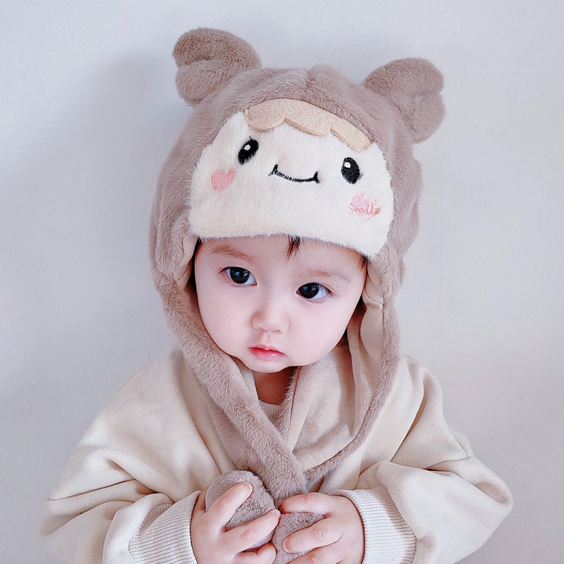 아기 모자 가을과 겨울 남성과 아기 여성 귀여운 슈퍼 귀여운 푹신한 모자 인터넷 인기있는 따뜻한 아기 겨울 날스토어 가기