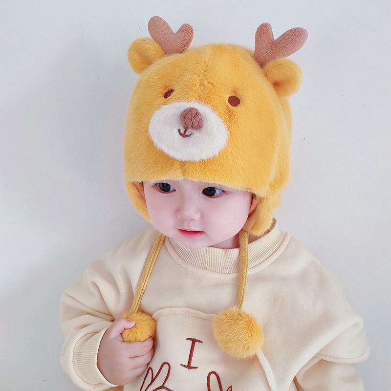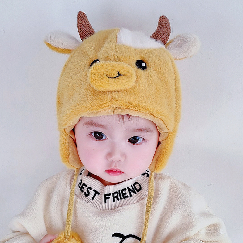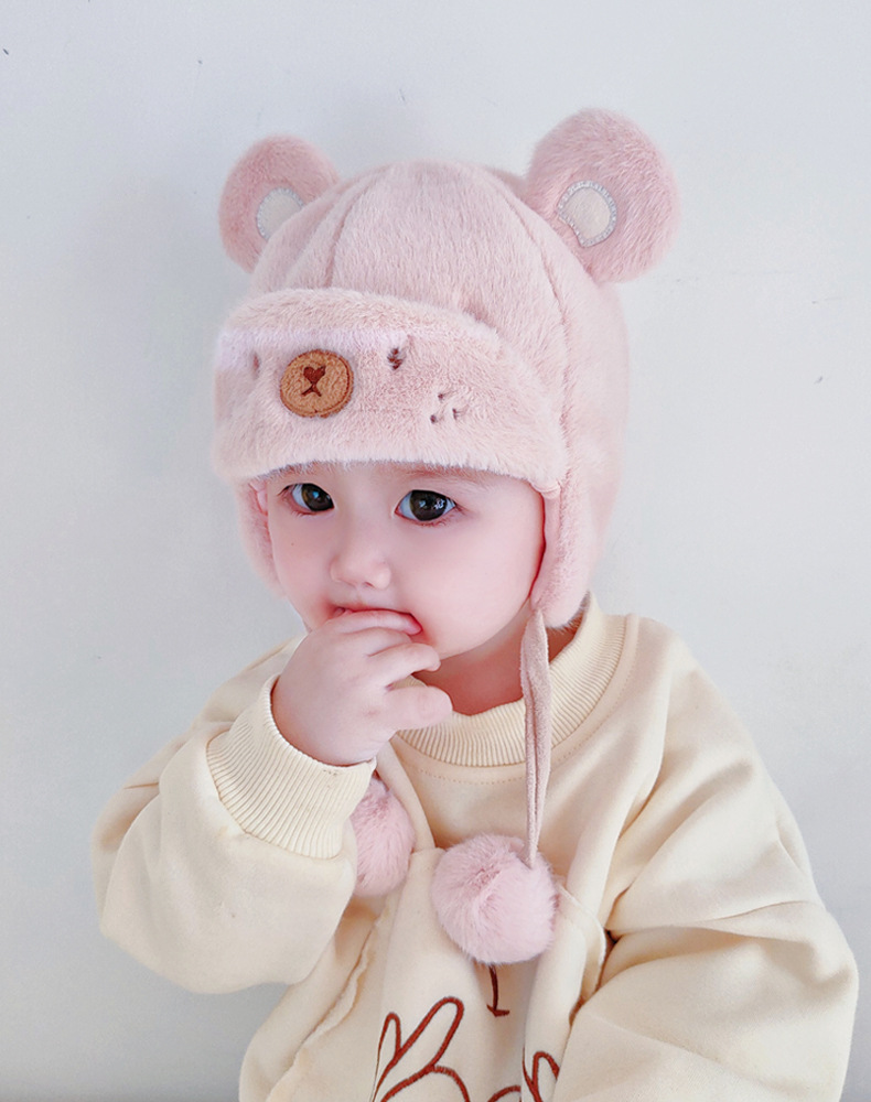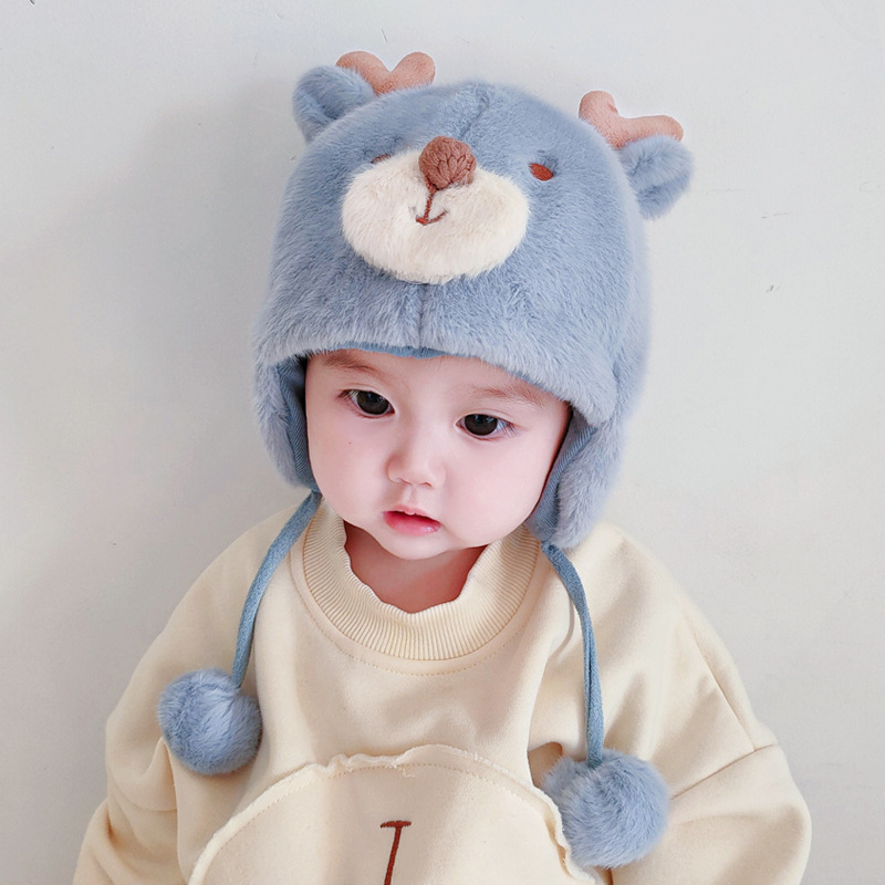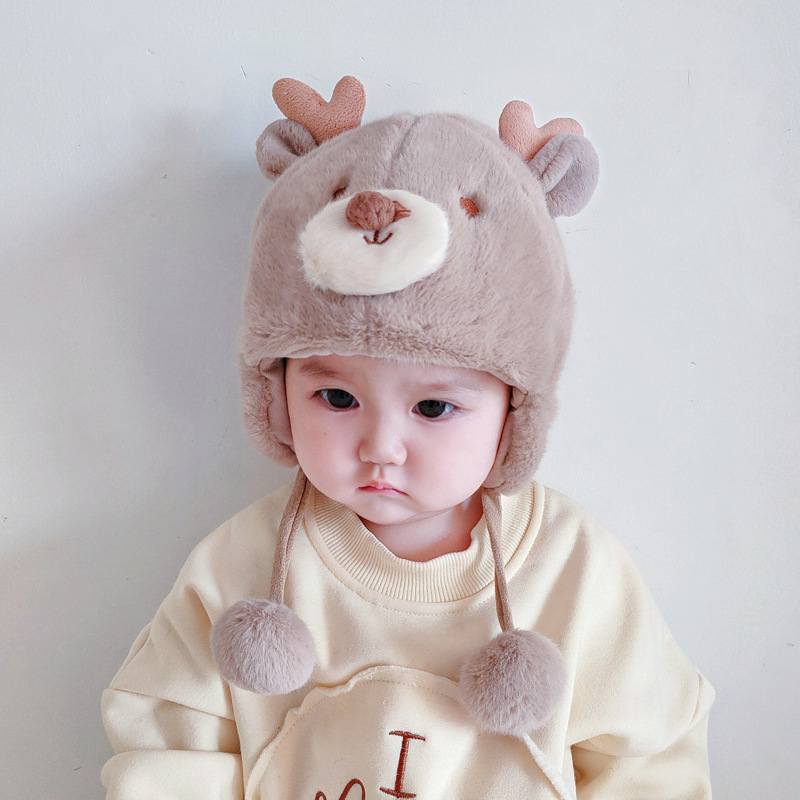 아기 모자 가을과 겨울 남성과 아기 여성 귀여운 슈퍼 귀여운 푹신한 모자 인터넷 인기있는 따뜻한 아기 겨울 날스토어 가기