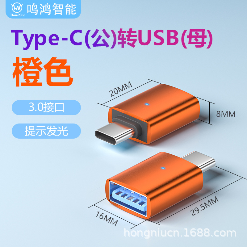• 조명이 있는 Type-C 남성-USB3.0 여성 주황색 알루미늄 쉘
