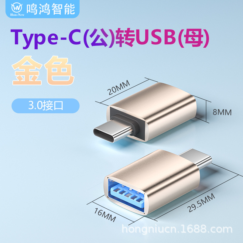• Type-C 남성 - USB3.0 여성 금색 알루미늄 쉘(조명 포함)