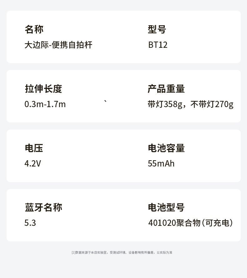 • T12 화이트 무조명 모델 [ 1.7m 알루미늄 합금 일체형 셀카봉 + 충전 다기능 블루투스 리모컨]